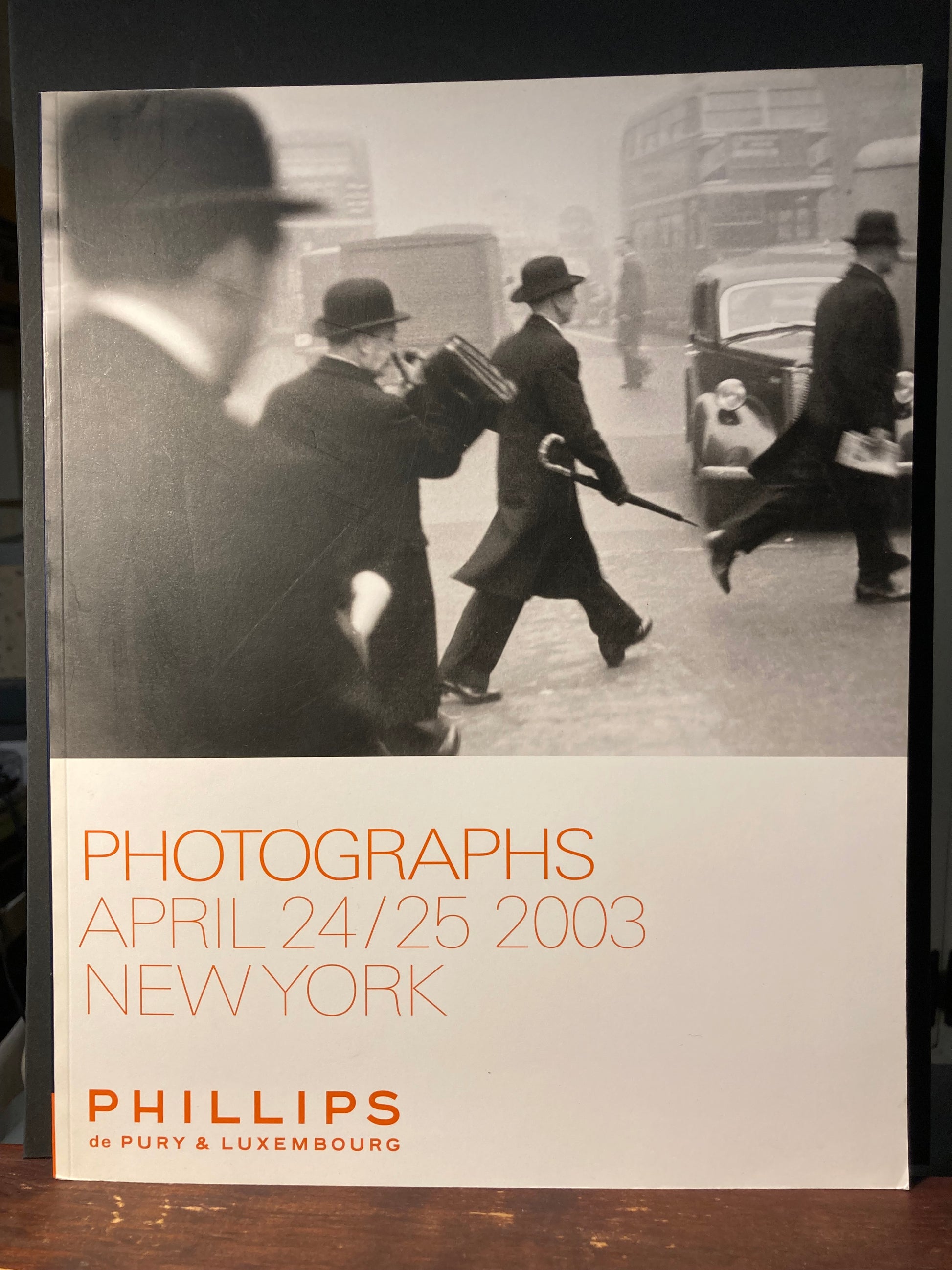 Auction catalog,132 pages, 231 lots , all illustrated. Approximately 11 x 14 inches. Photographers include Julia Margaret Cameron, Roger Fenton, William Henry Fox Talbot, William James Stillman, Bisson Freres, Henrich Kuhn, Edgar Degas, Jacques-Henri Lartigue, Karl Struss, Andre Kertesz, Henri Cartier-Bresson, Iwao Yamawaki, Dora Maar, Frantisek Drtikol, Alfred Stieglitz, Walker Evans, Edward Weston, Edward Steichen, Man Ray, Weegee (Arthur Fellig), Herbert List, Irving Penn, Bill Brandt, Robert Frank, Leon Levinstein, Richard Avedon, Joel Meyerowitz, William Eggleston, Andy Warhol, Richard Prince, Nan Goldin, Robert Mapplethorpe, Mike Kelley, James Welling, Pierre et Gilles, Gilbert and George, Sally Mann, Adam Fuss, Vik Muniz, Andreas Gursky, Philip-Lorca Dicorcia, Gregory Crewdson, Charles Negre, Etienne Carjat, Carleton Watkins, Charles Marville, Robert Howlett, (Muhammed) Sadiq Bey, William Henry Jackson, Frank Meadow Sutcliffe, Carl Moon, Eugene Atget, Karl Struss, Eva Watson-Schütze, Baron Adolph de Meyer, Lewis Hine, Brassai (Gyula Halasz), Paul Outerbridge Jr., Albert Renger-Patzsch, Alexandr Rodchenko, Consuelo Kanaga, Margaret Bourke-White, Berenice Abbott, Samuel H. Gottscho, Andreas Feininger, Roger Parry, Wolfgang Boese, Thurman Rotan, Carlotta Corpron, Norman Parkinson, Marion Post Wolcott, Herbert List, George Platt Lynes, Robert Capa, Alexander Zhitomirsky, Jacques-Henri Lartigue, W. Eugene Smith, Louis Faurer, Josef Sudek, Herbert Matter, Gordon Parks, O. Winston Link, Diane Arbus, Robert Adams, Helen Levitt, Edouard Boubat, Lee Friedlander, Stephen Shore, Jan Groover, Helmut Newton, Peter Hujar, Larry Clark, George Valentine Dureau, Sandy Skoglund, Larry Sultan, Cindy Sherman, Sally Mann, Lorna Simpson, Andreas Gursky. Fine.