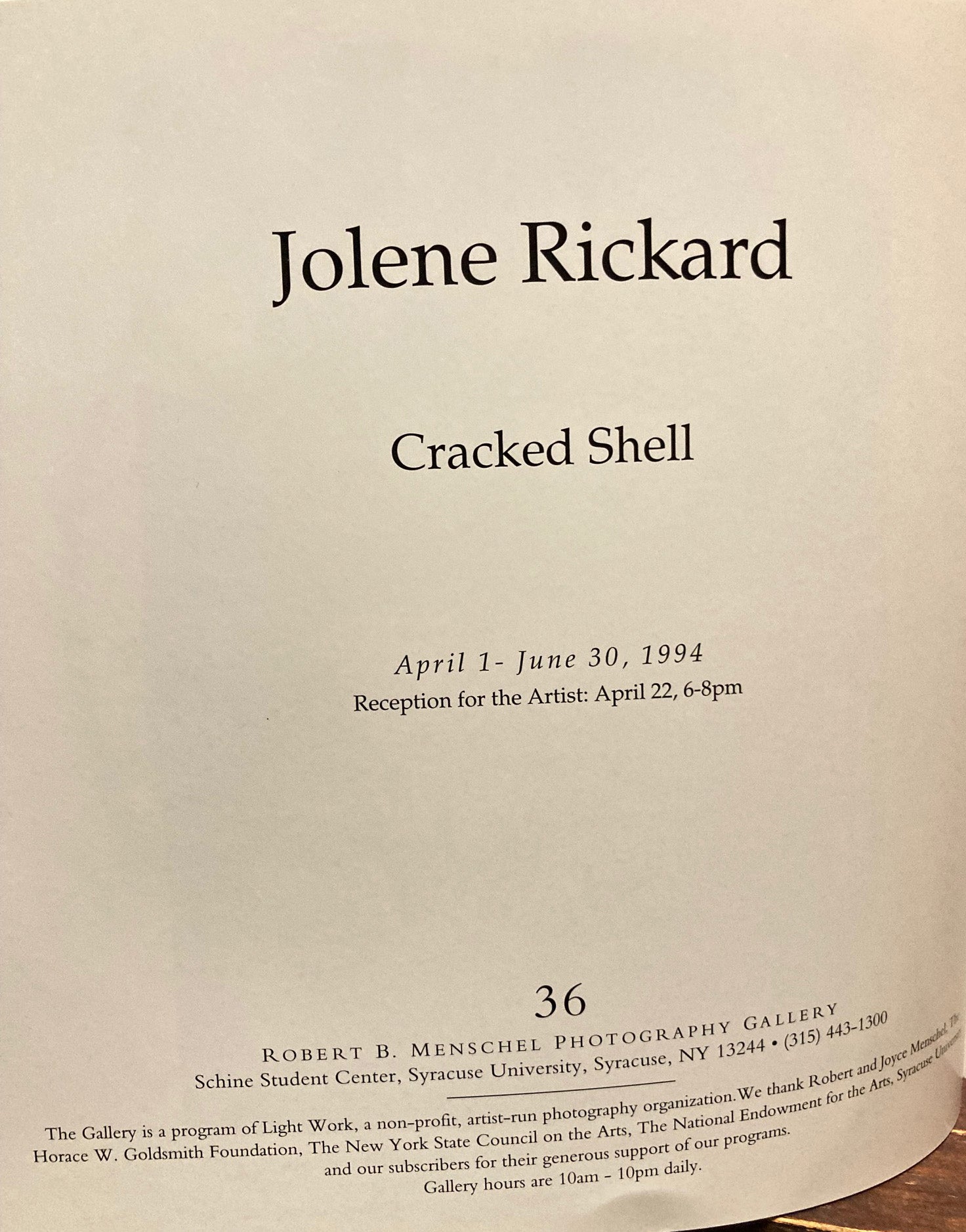 Rickard, Jolene. Jolene Rickard: Cracked Shell. April 1 - June 30, 1994.
