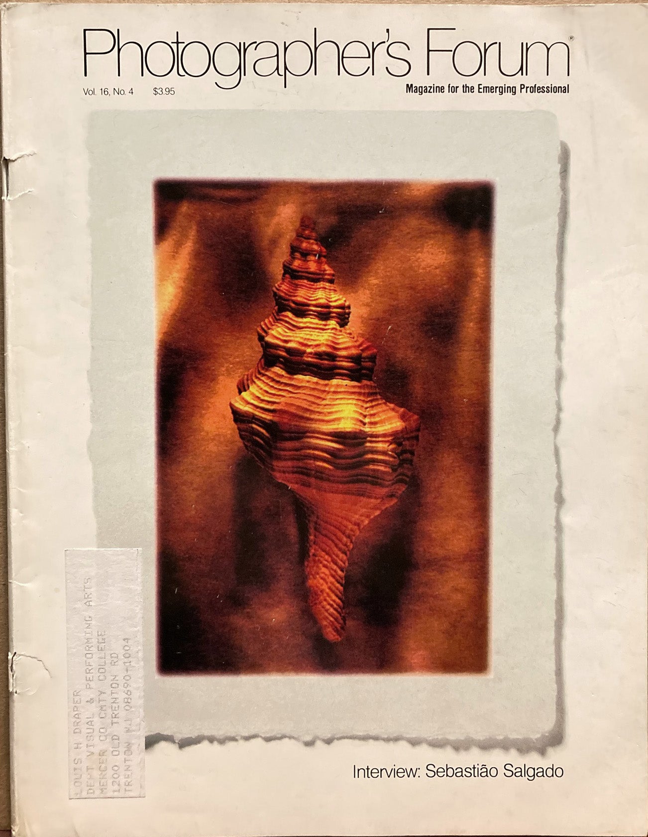 Entire issue of magazine, 63 pages, including interview with Sebastiao Salgado by Ken Lassiter on pages 24-31 with eight black-and-white illustrations. Also a book review of Salgdao's Workers. Other photographers featured in this issue include Mark Kettenhofen (with interview), Bernard Gotfryd, Juni B. Banico, Angie K. Reid, DeeAnn Hyduchak, Justin Colt Beckman, Chuck Jones, Barry Koblenz, Adele C. Moore, Tina Williams, and Jody Dole. Near very good with a few spots, cover partially detached. Mailing label on front cover addressed to the late photographer, Louis H. Draper.