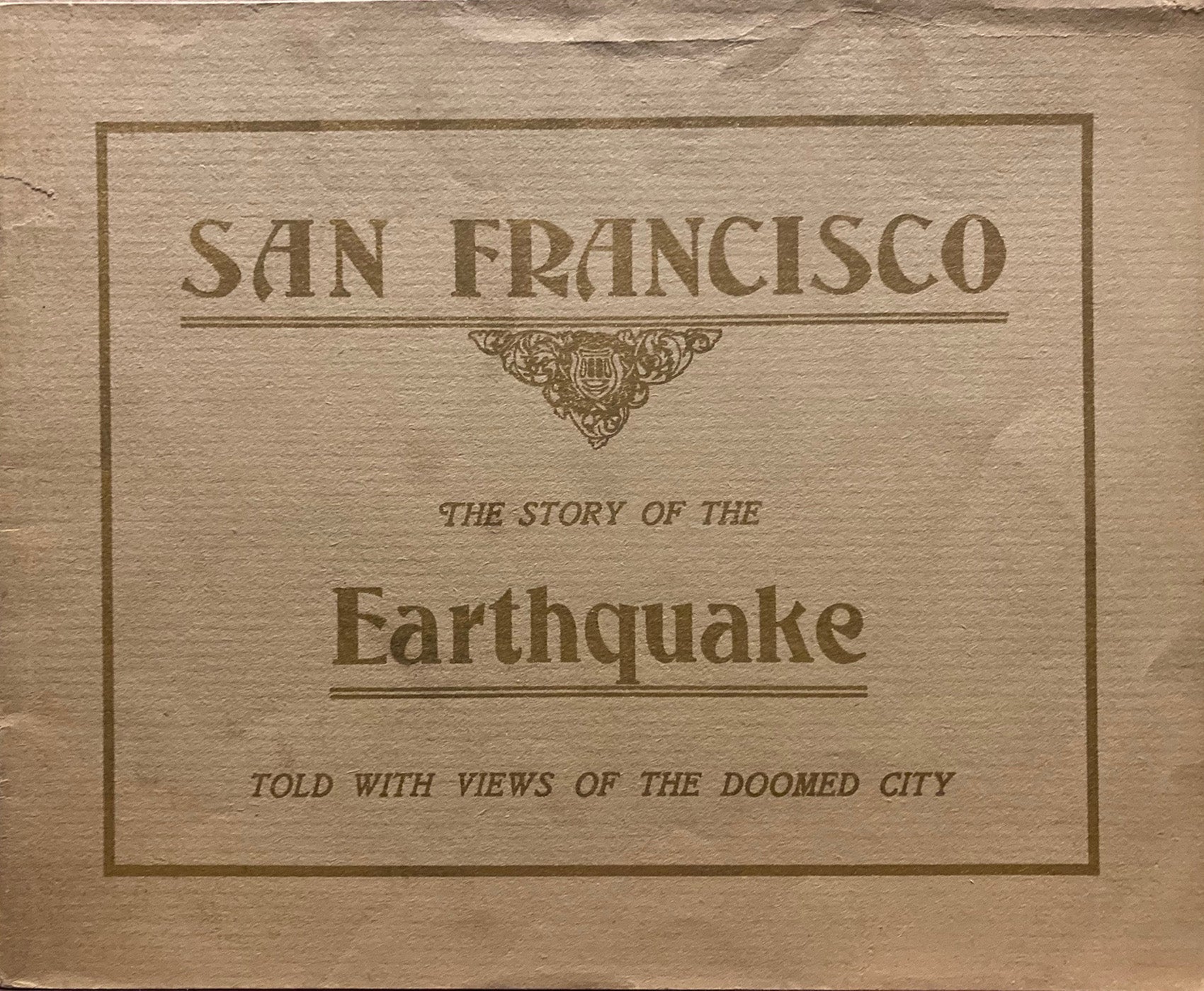 L.H. Nelson, 1906. Oblong dark tan wraps with gilt lettering. 32 pages with full page illustrations. Very good with minor wear on front cover. Photos of the California city before the quake and fire which destroyed much of it in 1906. Despite title, the photos were taken before the earthquake and subsequent destruction, which is discussed in the introduction and captions. [Other copies found for sale on Internet have red or green covers. I do not know which was issued first.]