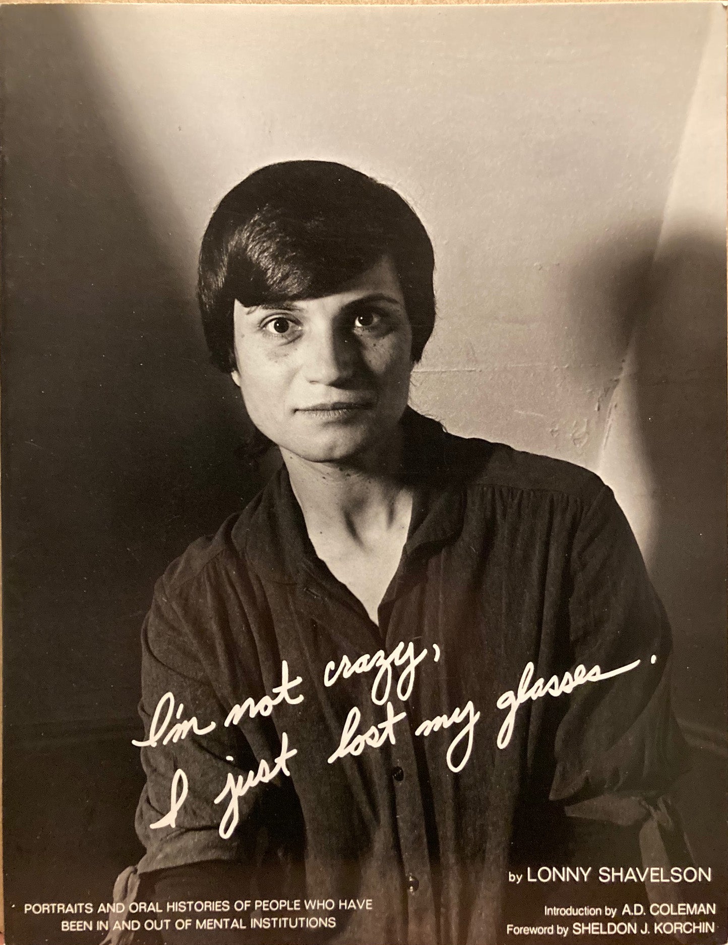 Portraits and Oral Histories of People Who Have Been In and Out of Mental Institutions by Lonny Shavelson. De Novo, 1986. Introduction by A.D. Coleman. Foreword by Sheldon J. Korchin. Full page black-and-white portraits by Shavelson with text on facing pages. Images of people with mental disabilities. Stiff illustrated wraps, unpaginated (about 92 pages). Like new.