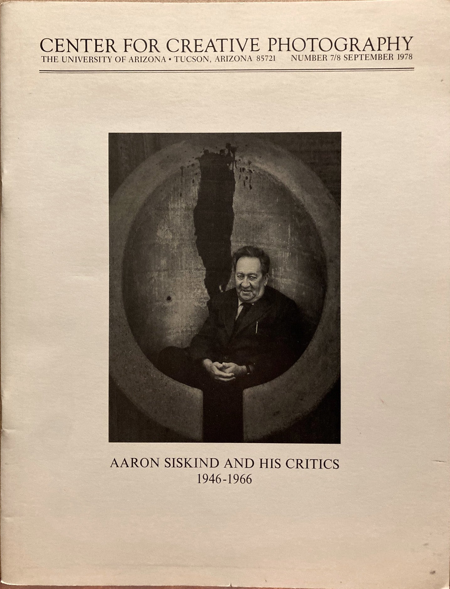 Center for Creative Photography, Number 7/8, September 1978, University of Arizona. Includes "Siskind's Critics" by Carl Chiarenza and Siskind bibliography. Inscribed and SIGNED by Chiarenza, uncommon thus. Wraps, 47 pages, fine.