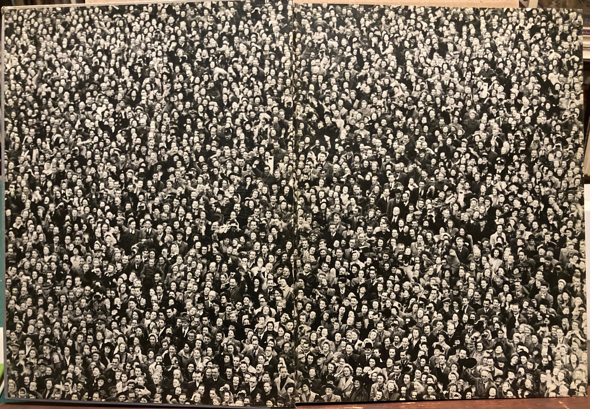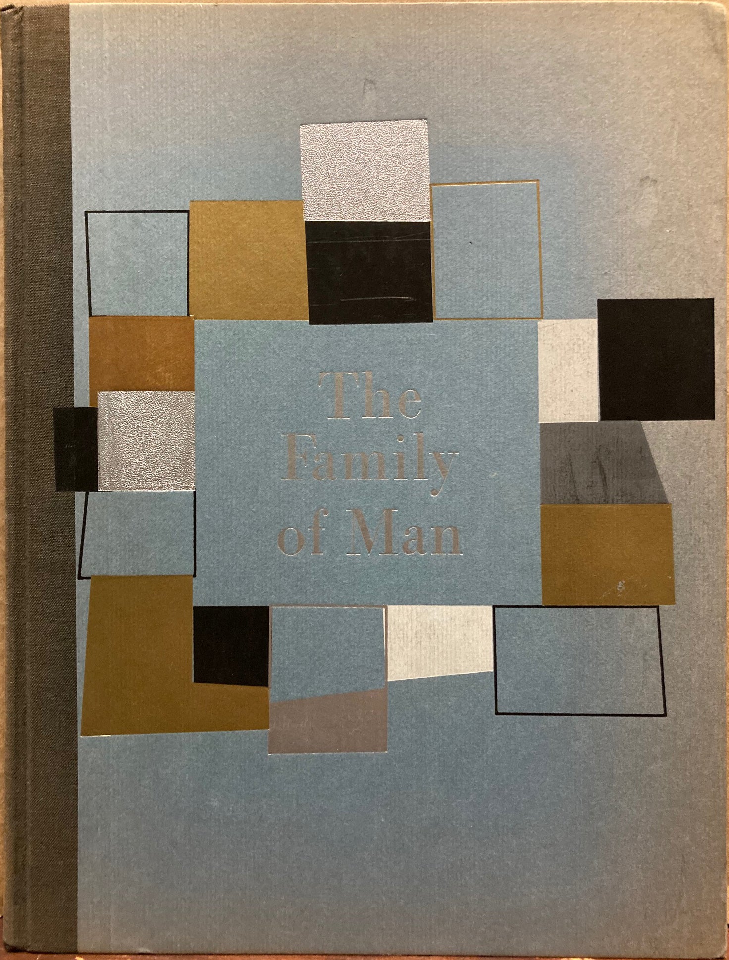 The Photographic Exhibition Created by Edward Steichen for the Museum of Modern Art. Prologue by Carl Sandburg. Published for the Museum of Modern Art by Simon and Schuster, in collaboration with the Maco Magazine Corp, 1955. [Photographers: Ansel Adams; Erich Andres; Emmy Andriesse, Diane and Allan Arbus; Eve Arnold; Richard Avedon; Ruth Marion Baruch; Hugh Bell; Wermund Bendten; Paul Berg; Lou Bernstein; John Bertolina; Eva Besnya; Werner Bischof (6); Maria Bordy; Edouard Boubat; Margaret Bourke-White (6); Mathew Brady; Bill Brandt; Brassai; Manuel Alvarez Bravo; Joseph Breitenbach; David Brooks; Reva Brooks; Ernest Brunner; Esther Bubley; Wynn Bullock; Shirley Burden; Rudolf Busler; Harry Callahan; Cornell Capa; Robert Capa, Robert Carrington; Lewis Carrol; Henri Cartier-Bresson (10); Ted Castle; Marcos Chamudes; Edward Clark; Hermann Classen; Roy DeCarava; Jack Delano; Nick DeMaroli; J. DePietro; R. Diament; Robert Doisneau; Nell Dorr; Nora Dumas; David Douglas Duncan; Eastfoto; Alfred Eisenstaedt (8); Elliott Erwitt; J.R. Eyerman; Sam Falk; Nat Farbman (8); Eleanor Fast; Louis Faurer; Ed Feingersh; Andreas Feininger; Vito Fiorenza; Leopold Fisher; John Florea; Robert Frank (7); Toni Frissell; Unosuke Gamou; William Garnett; Edmund Bert Gerard; Guy Gillette; Burt Glinn; Fritz Goro; Allan Grant; Farrell Grehan; Rene Groebli; Mildred Grossman; Rapho Guilumette; Karl W. Gullers; Ernst Haas (6); Peter W. Haberlin; Otto Hagel; Hideo Hago; Robert Halmi; Hiroshi Hamaya; Caroline Hammerskiold; Hans Hammerskjold; Hella Hammid; Chien Hao; Willie Huttig; Yasuhiro Ishimoto; Izis; Fenno Jacobs; Raymond Jacobs; Ronny Jacques; Bob Jakobsen; Nico Jess; Constantin Joffe; Carter Jones; Henk Jonker; Victor Jorgensen; Clemens Kalisher; Simpson Kalisher; Consuelo Kanaga; Ihei Kimura; Martha Kitchen; Dmitri Kessel (8); Keystone Press; N. Kolli; Torkel Korling; Koslovsky; Ewing Krainin; Herman Kreider; Walter B. Lane; Dorothea Lange (8); Harry Lapow; Lisa Larsen; Alma Lavenson; Arthur Lavine; Russell Lee; Nina Leen; Laurence LeGuay; Henri Leighton; Arthur Leipzig; Charles Leirens; Gita Lens; Leon Levinstein; Helen Levitt; Margery Lewis; Sol Libsohn; David Linton; Herbert List; Jacob Lofman; G.H. Metcalf; Gjon Mili; Francis Miller; Joan Miller; Lee Miller; Wayne Miller (12); May Mirin; Lisette Model; Peter Moesehlin; David Moore; Barbara Morgan; Hedda Morrison; Ralph Morse; Robert Mottar; Carl Mydans; Dave Myers; Fritz Neugass; Lennart Nilsson; Pal-Nils Nillson; Emil Obrovsky; Okamoto; Cas Oorthuys; Ruth Orkin; Don Ornitz; Eiju Otaki; Homer Page (9); Marion Palfi; Gordon Parks; Rondal Partridge; Irving Penn; Carl Perutz; John Phillips; Leonti Planskoy; Raphael Platnick; Fred Plaut; Rudolf Pollak; Gottfried Rainer; Daniel J. Ransohof; W.C. Rauhauser; Satyajit Ray; Anna Riwkin-Brick; George Rodger; Willy Ronis; Annelise Rosenberg; Hannes Rosenberg; Sanford Roth; Eric Schwab; Bob Schwalberg; Kurt Severin; David Seymour; Ben Shahn; Musya S. Sheeler; Li Shu; George Silk; Bradley Smith; Ian Smith; W. Eugene Smith; Howard Sochurek; Peter Stackpole; Alfred Statler; Gitel Steed; Edward Steichen; Mary and Kate Steichen; Steinheimer; Ezra Stoller; Lou Stoumen; George Strock; Constance Stuart; E. Sved; Suzanne Szasz; Yoshisuke Terao; Gustav Thorlichen; Charels Trieschmann; Tuefferd; Jakob Tuggener; Allan Turoff; Doris Ulmann; A. Uzlyan; Ed Van der Elsken; William Vandivert; Pierre Verger; Ike Vern; Vero; Roman Vishniac; Carmel Vitullo; Edward Wallowitch; Arthur Witman; Jasper Wood; Yosuke Yamahata; Shizuo Yamamato] Decorated boards, 1/4 cloth. (With crowd photographs on the inside covers, lacking on later printings; this early printing also includes exhibit installation photos by Ezra Stoller, lacking in most other printings.) Not issued with dust jacket. Copies available: