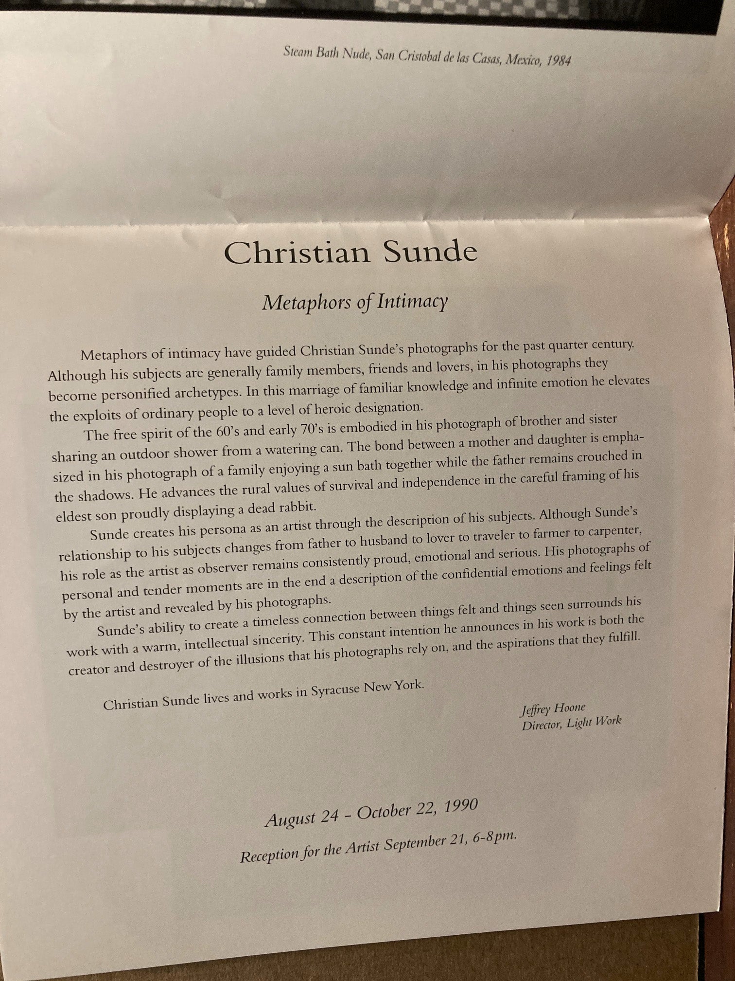 Sunde, Christian. Christian Sunde. Metaphors of Intimacy. August 24 - October 22, 1990.