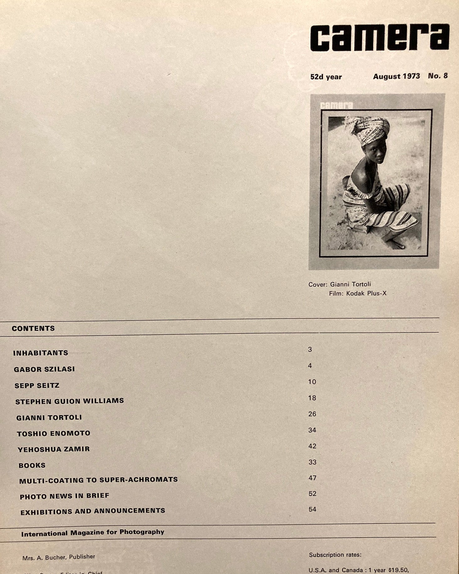 Camera, August 1973. Volume 52, No. 8. Inhabitants. Gabor Szilasi, et al.