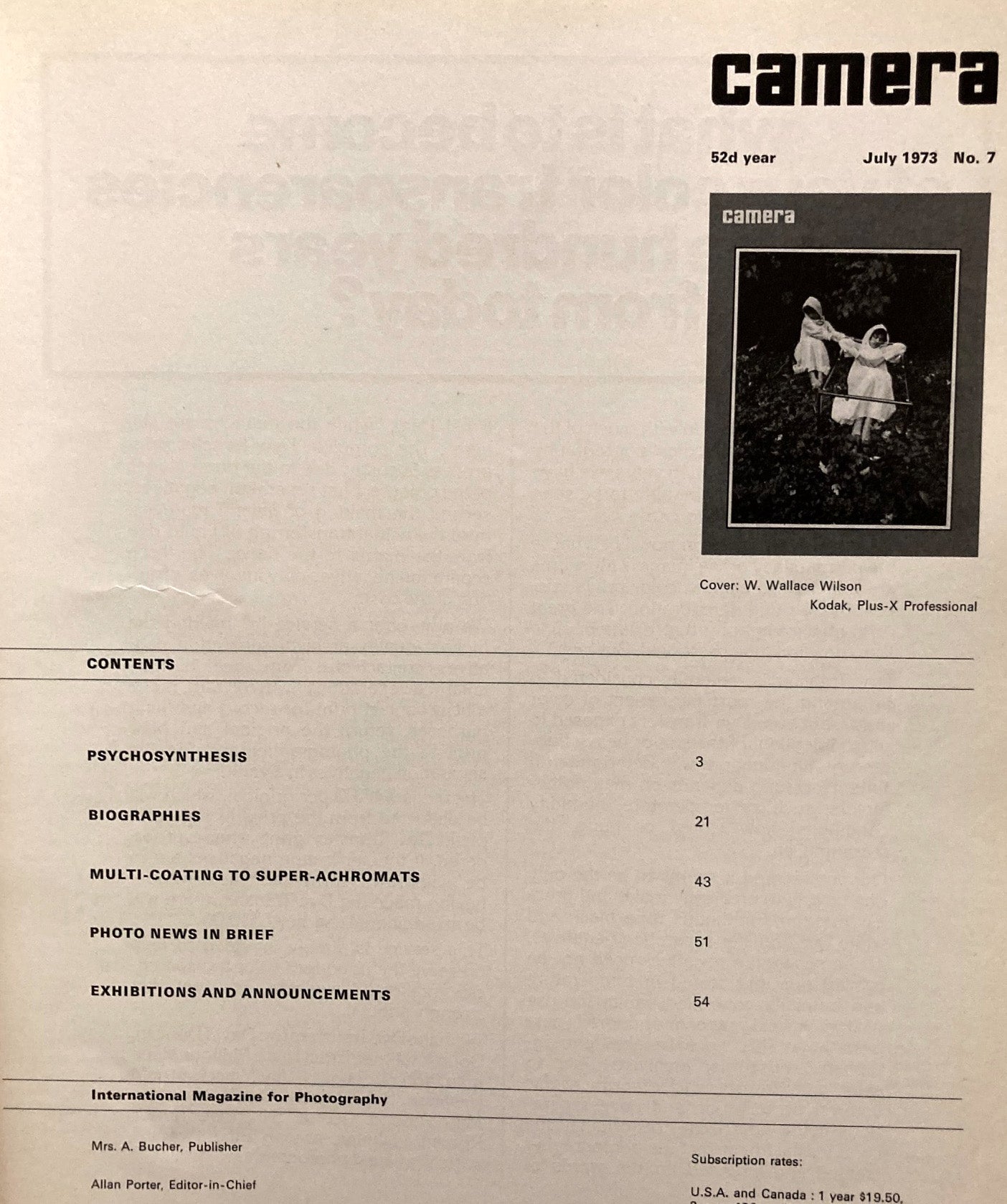 Camera, July 1973. Volume 52, No. 7. Psychosynthesis. James Nachtwey, et al.
