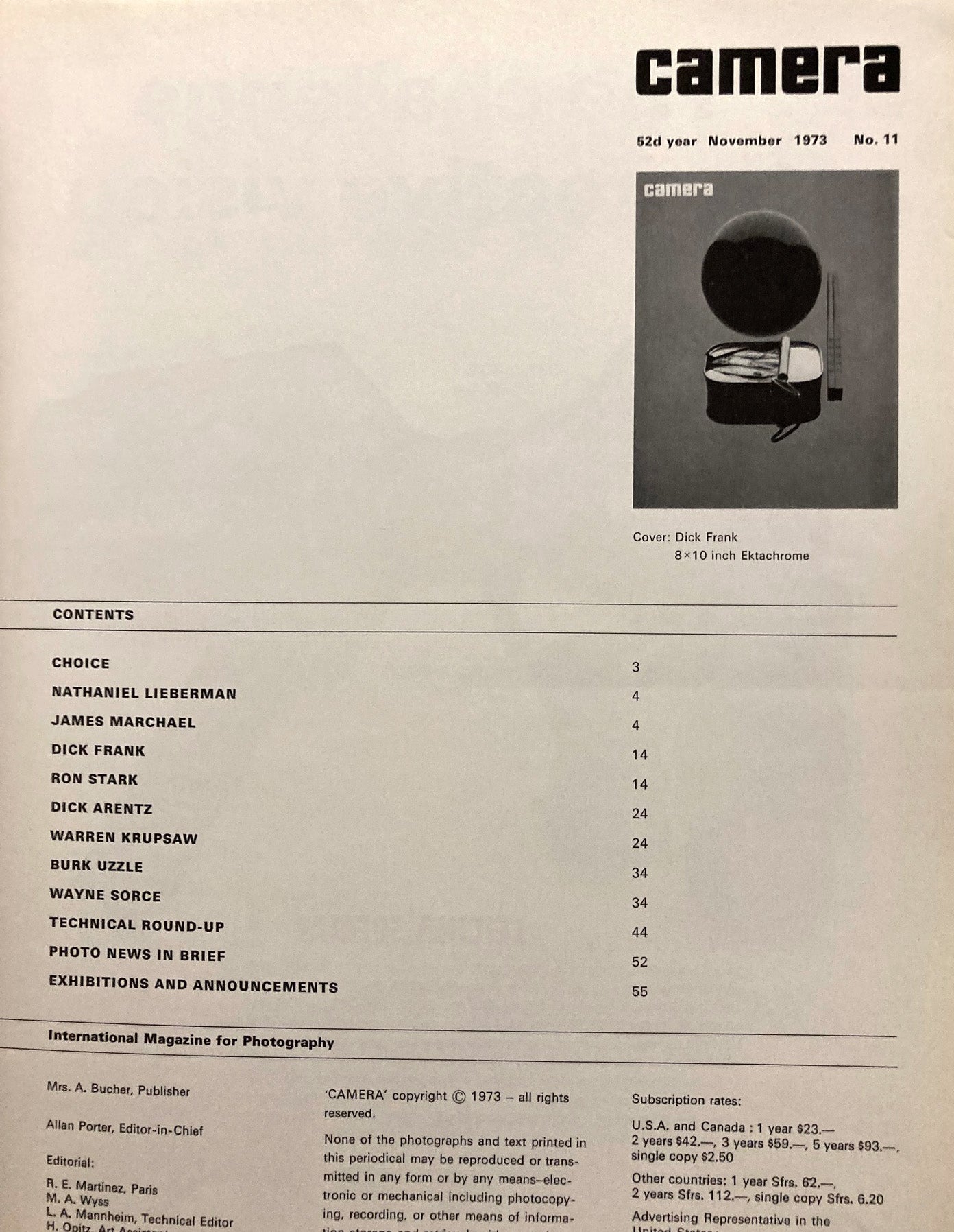 Camera, November, 1973, Volume 52, No. 11.