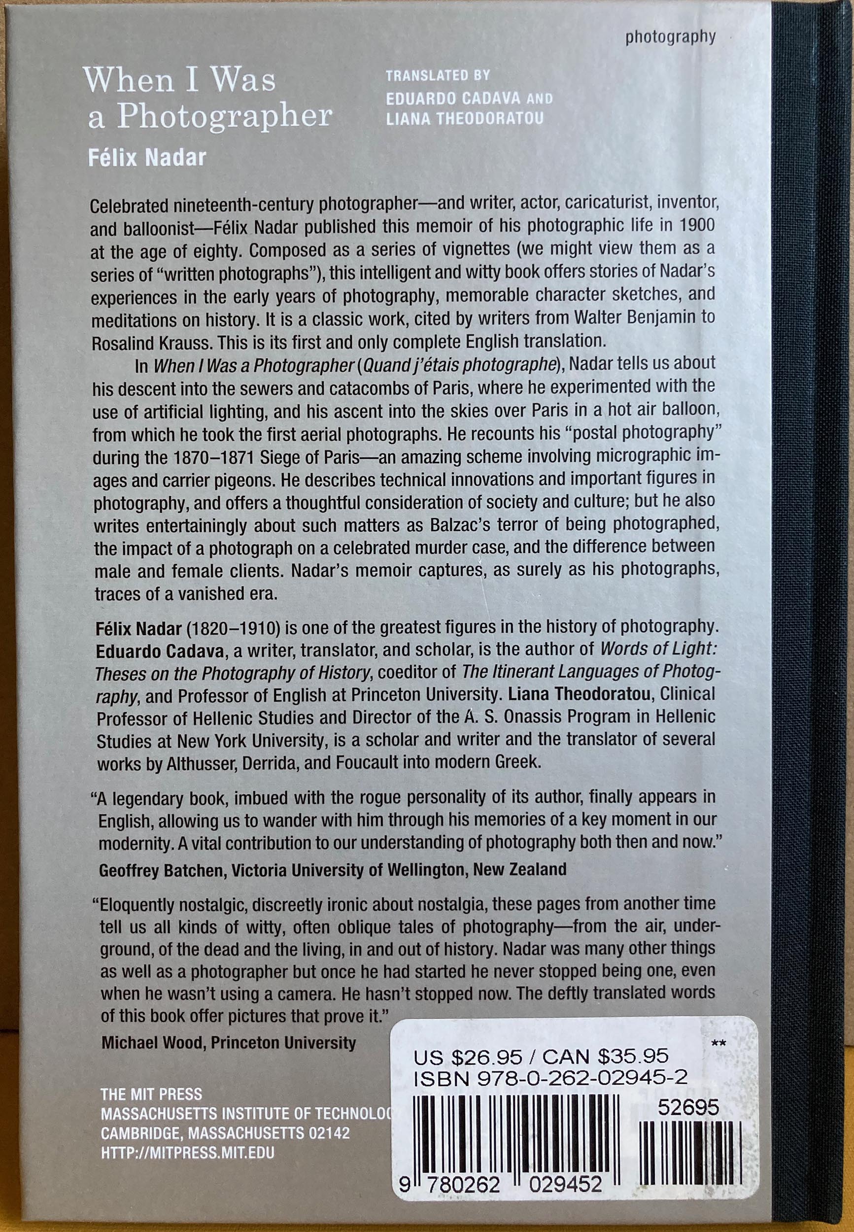 Nadar. When I Was a Photogapher by Felix Nadar. Translated by Eduardo Cadava and Liana Theodoratou.