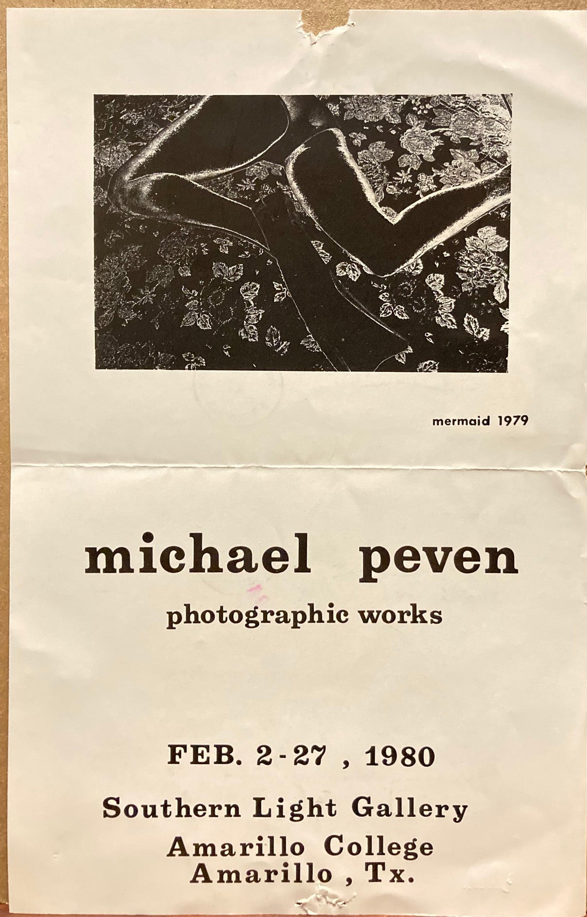 Artist's publication by Peven (1949-2017), 1979. Edition of 250, as new. Set of six books, 11.5 x 15.5 cm. each. Paper wraps, staple bound. Offset printed in color. Signed in facsimile, unnumbered. A set of six oversize faux matchbooks featuring well known U.S. landmarks and monuments on the front flip cover. Set entitled, “Snatches,” and includes “Arch Angel,” “Blue Tips,” “Hot Heads,” “Golden Showers,” “Bridging the Gap,” and “Giving Heads.” Titles suggest the sometimes pornographic color photographs under the (matchbook) covers. Comes with a conventional matchbook of the Hoover Dam, signed by Peven in 1979, when I acquired the set directly from him by mail. Also comes with an exhibition announcement, “Michael Peven: Photographic Works,” Feb. 2-27, 1980, Southern Light Gallery, Amarillo College, very good with staple holes, chip at edge, and mailing label. [Peven was a Professor of Art at the University of Arkansas and was active in the Society for Photographic Education. He published a limited edition book, Prophesy Panorama (A Cultural Nighmare) in 1982.]