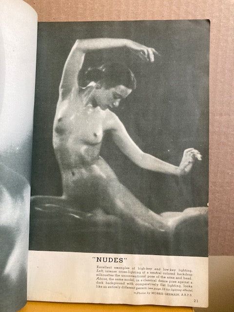 By Robert Hertzberg, editor, Ralph Daigh, Managing Editor, and Al Allard, Art Director. Fawcett, 1938. Wraps, 146 pages, 300 pictures. Likely the second handbook in the series but not numbered. Good with light water stains on first few age-toned pages, scratch on cover, and tape stains at hinges. Numerous articles with advice for photographers, including various darkroom tricks for manipulating photographs, camera attachments and accessories, camera repair and adjustment, lights and lighting, darkroom processing, “Make It Yourself,” and pictorial section featuring these photographers: Paul Wolff; William Rittase; Harold M. Lambert; Morris S. German; Freg G. Korth; Clarence P. Berg; Don Wallace; Stephen White; Torkel Korling; Ned Schafer; Raymond Rabinowitz; Ralph Daigh; and H.L. Standley. A rather uncommon book.