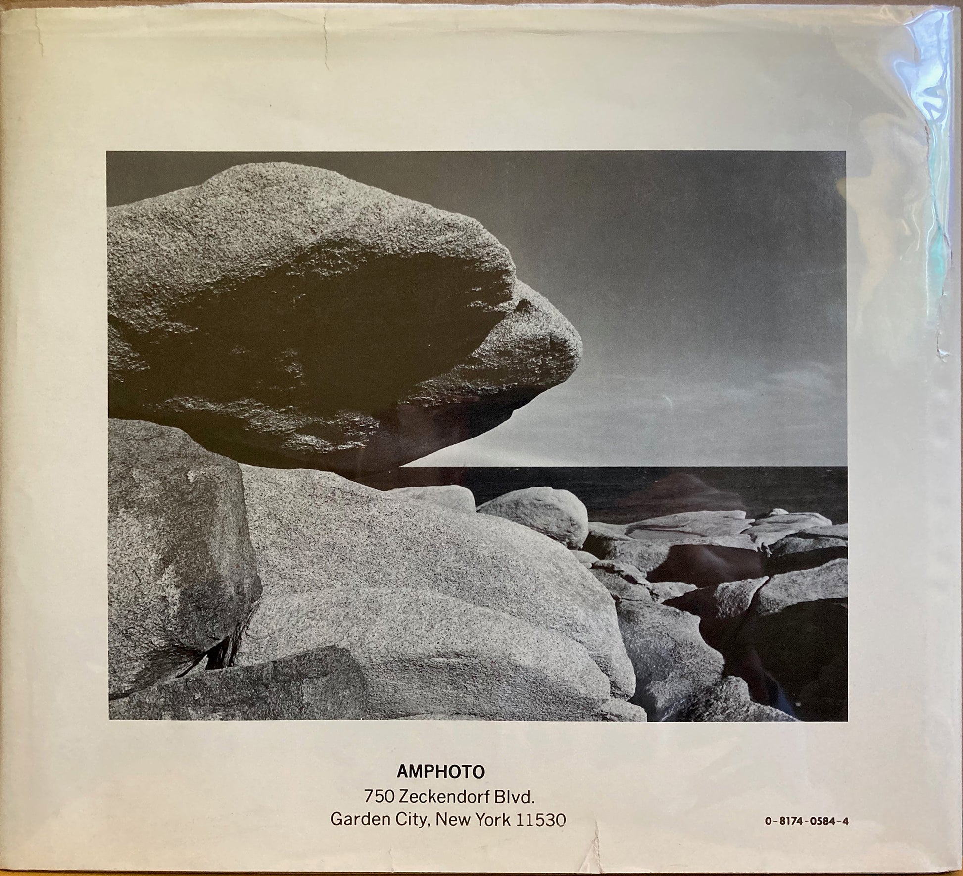 Amphoto, 1978. Third Printing. 160 pages. Hardcover, near fine, with near very good protected dust jacket with several closed edge tears not affecting cover images. 75 full page black and white photos by Picker printed in duotone, with Picker’s text on facing pages. Back of the book provides technical information. In the tradition of Ansel Adams, Picker’s landscape and other photos depict Easter Island (on which he published a book, Rapa Nui), California, Connecticut, Maine, Massachusetts, New Hampshire, New York, Vermont, and other places. An advocate of the Zone System, Picker authored the textbook, Zone VI Workshop, one of the most popular instructional books on analog photography, and was renowned for his photograph print washers and other Zone VI products. Note: reflections in pictures below are from dust jacket protector.