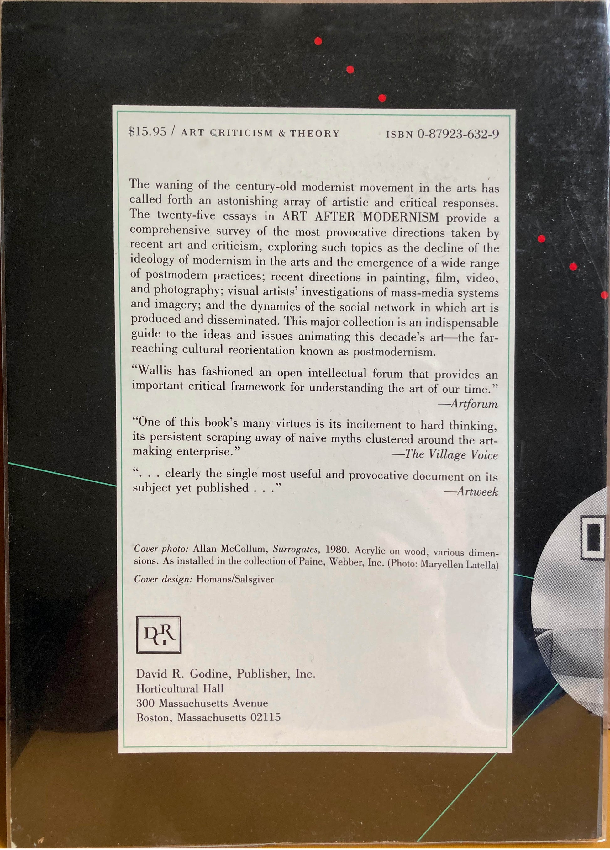 Postmodernism. Art After Modernism: Rethinking Representation, edited by Brian Wallis.