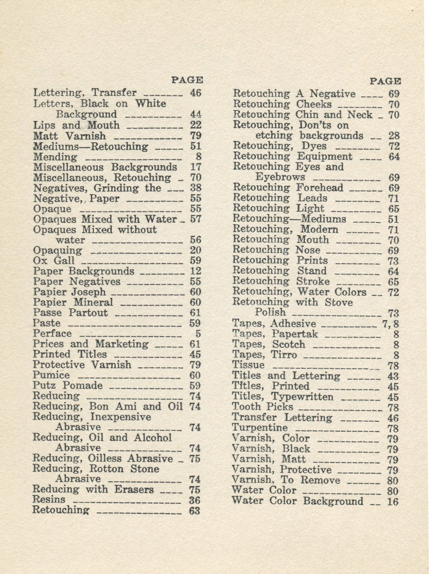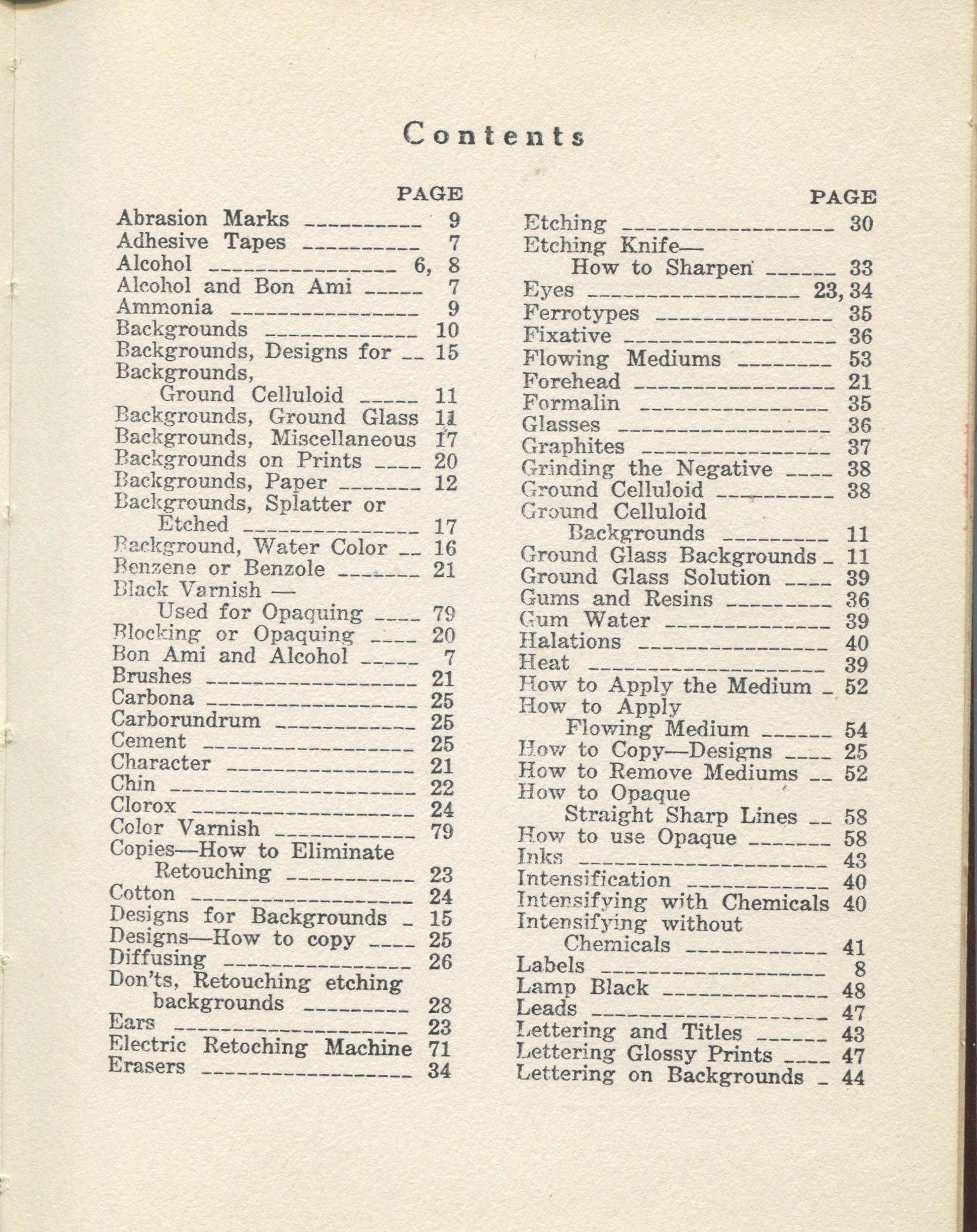 Fomo Publishing, 1937. Near very good without dust jacket in red cloth. Covers the subject alphabetically, from Abrasion Marks to Water Color Background. See table of contents in the pictures accompanying this listing. Author had 25 years experience doing retouching. Includes illustrations. 80 pages.
