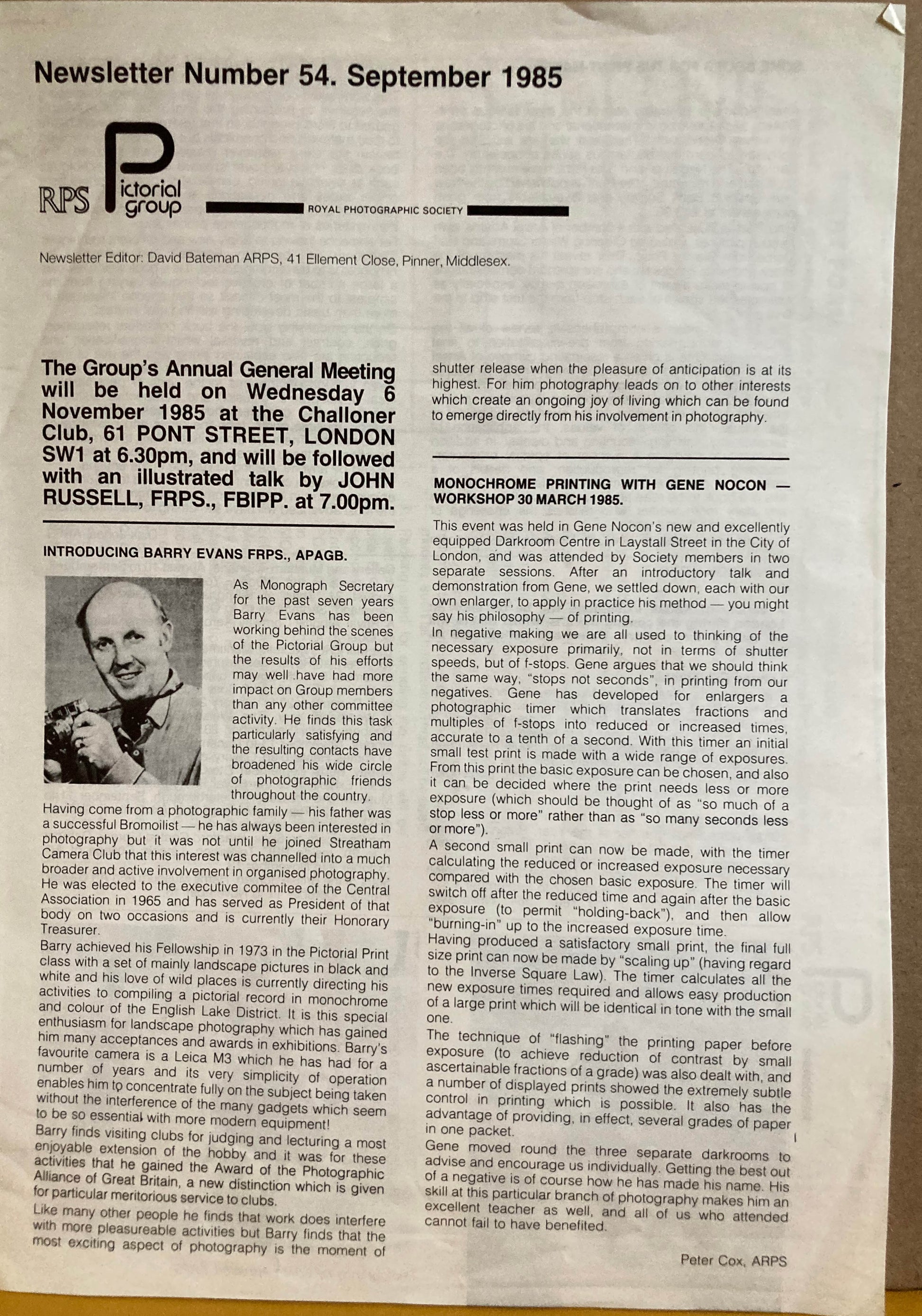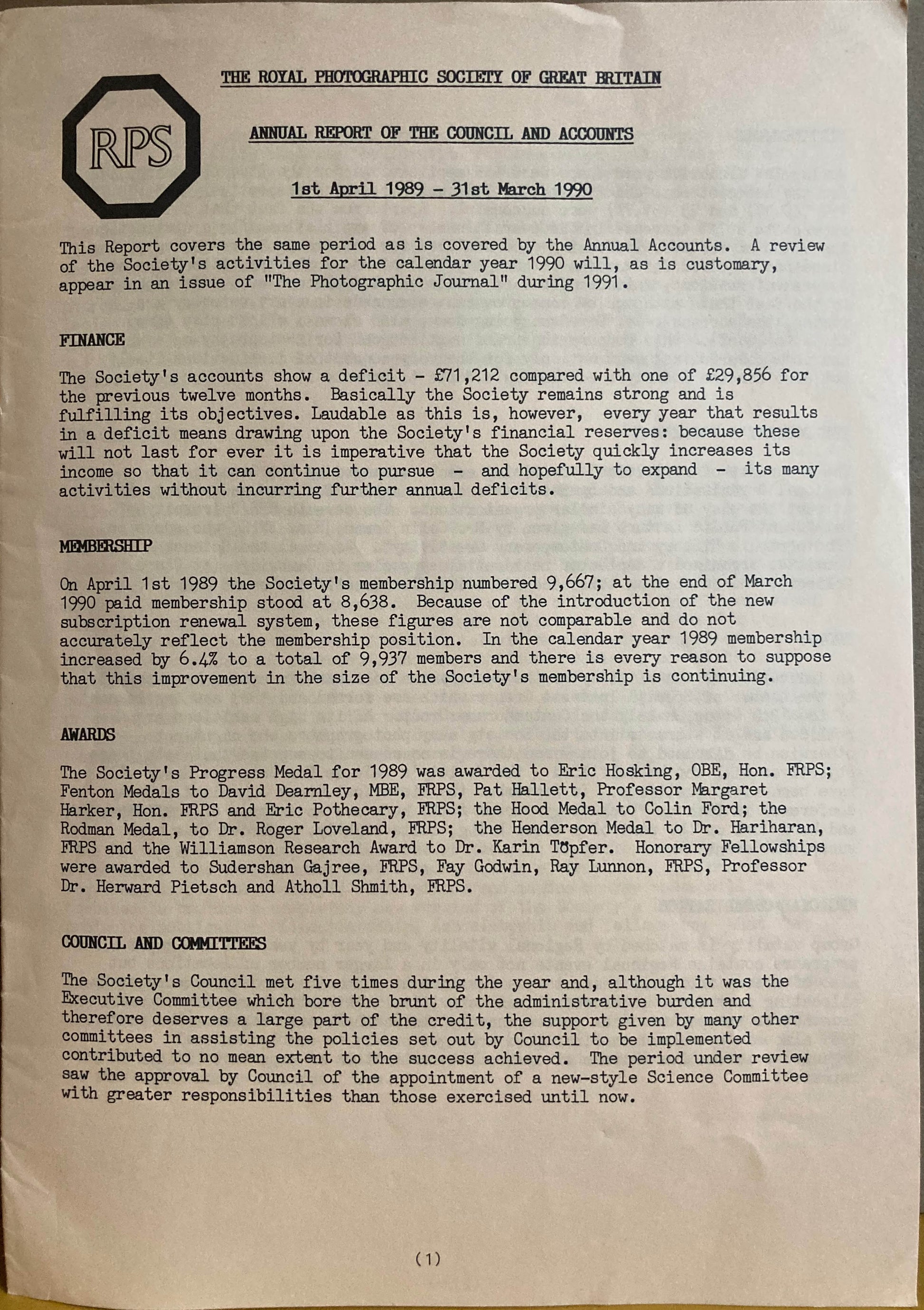 Royal Photographic Society. Newsletters and brochures, 1985–1992.