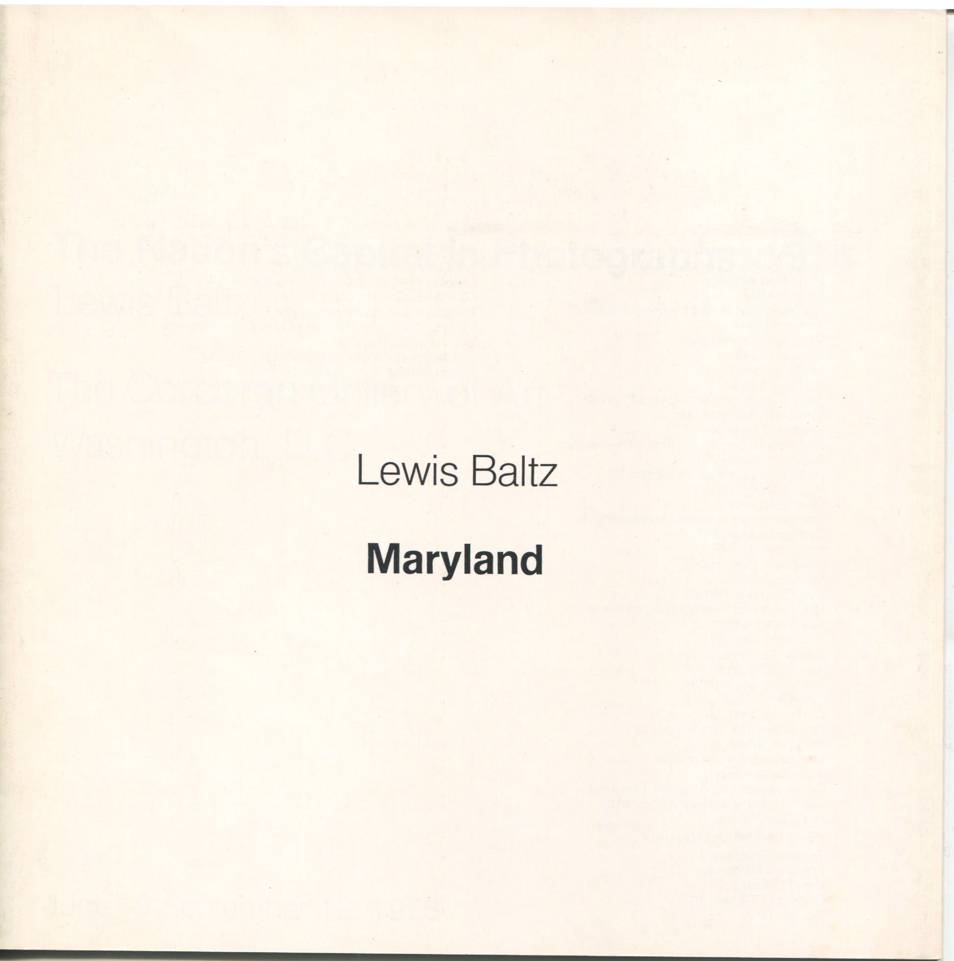Baltz, Lewis. Maryland by Lewis Baltz. The Nation's Capitol in Photographs.