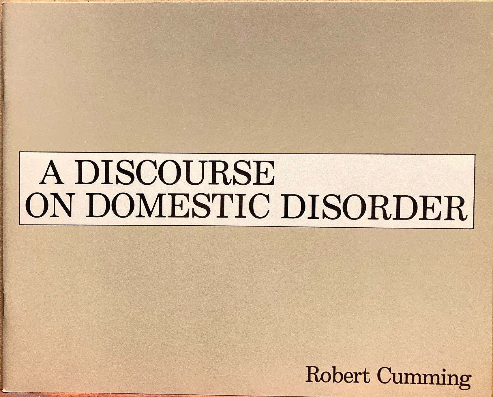 Self-published artist's book, 1975. Wraps, 21 pages.1st edition. [A presumably fictional discourse by Cumming about his relationship with his neighbor Wayne, interspersed with his conceptual staged photographs.] Like new.