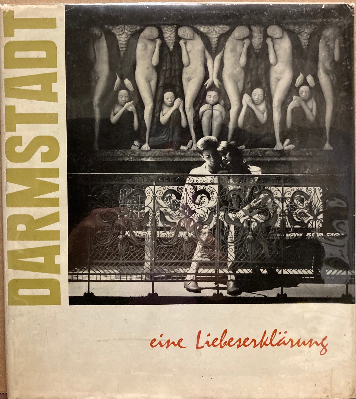 Aufnahmen Ruth Fink. Text Willy Thonnessen. Dieses Darmstadt-Buch wurde 1960 zum hundertfunfundzwansigjahrigen Bestehehen der Firma Eduard Roether, Buchdruckerei und Verlag. Black-and-white photographs of a summer day in Darmstadt, Germany, divided into sections: Morning, Breakfast Time, Panorama, Midday, Sitting on a Park Bench, The Nursery, and Evening. 126 pages. Fine with vg+ protected dust jacket. List of photos laid in, in German, French, and English. Text of book is in German.