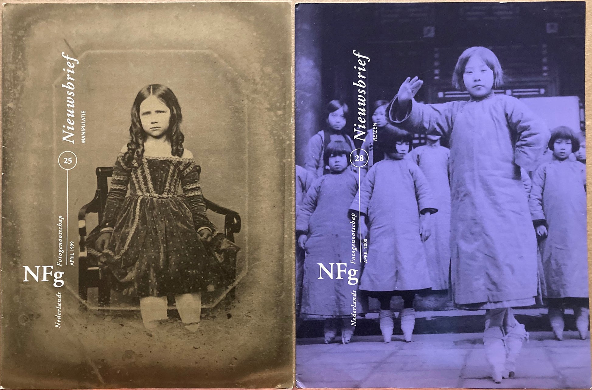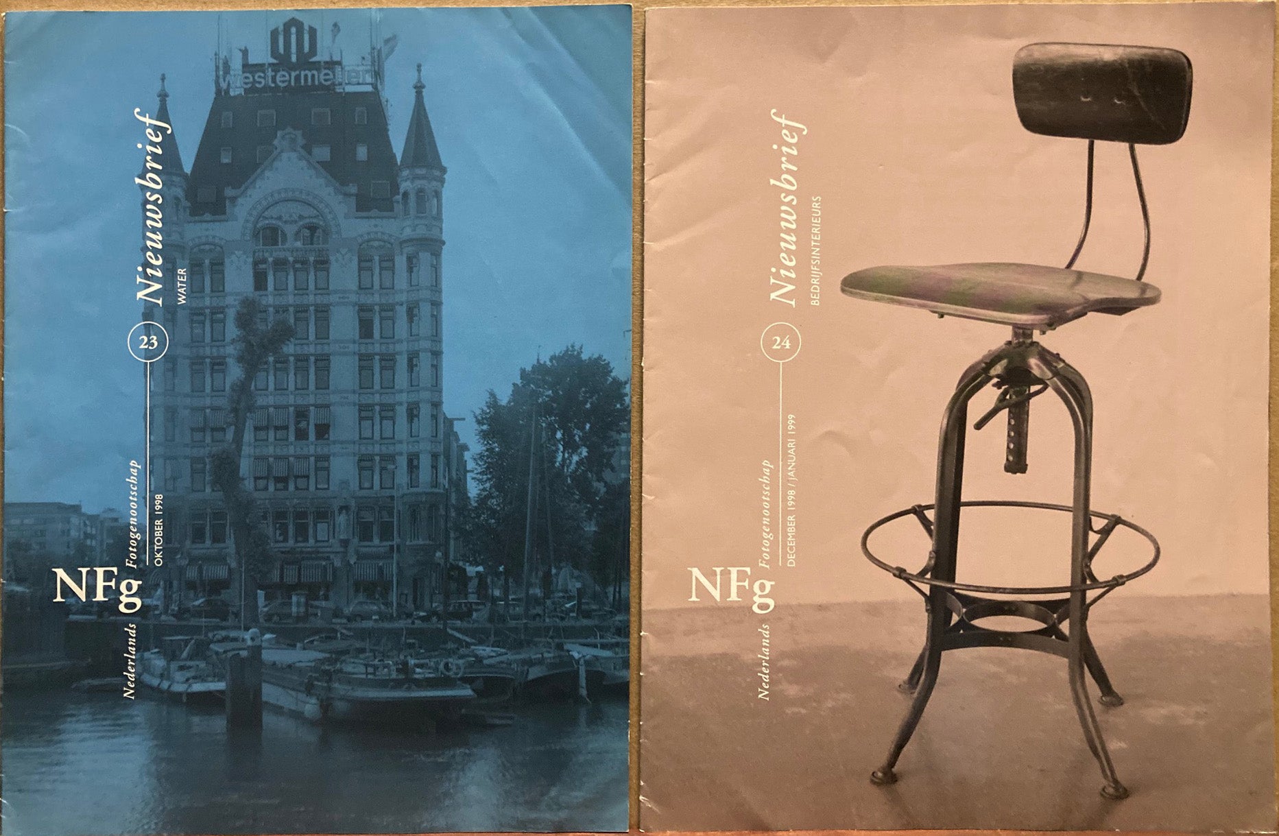 NFg. Nederlands Fotogenootschap. 4 issues: 23, 24, 25, and 28, 1998-2000. [Even if you don't read Dutch, you will enjoy looking at the pictures! Subjects include space photography, photography in China, and remarkable UFOs (flying saucer photos, perhaps with aliens inside). Photographers include Aart Klein, D.L. Dert, Paul Citroen, Erwin Blumenfeld, Kurt Kahle, N.J. Bavelaar, Paul en Menno de Nooijer, Ellen Thorbecke, Marc Riboud, Warren de la Rue (moon photo, 1865), and Charles Conrad (astronaut). VG+.