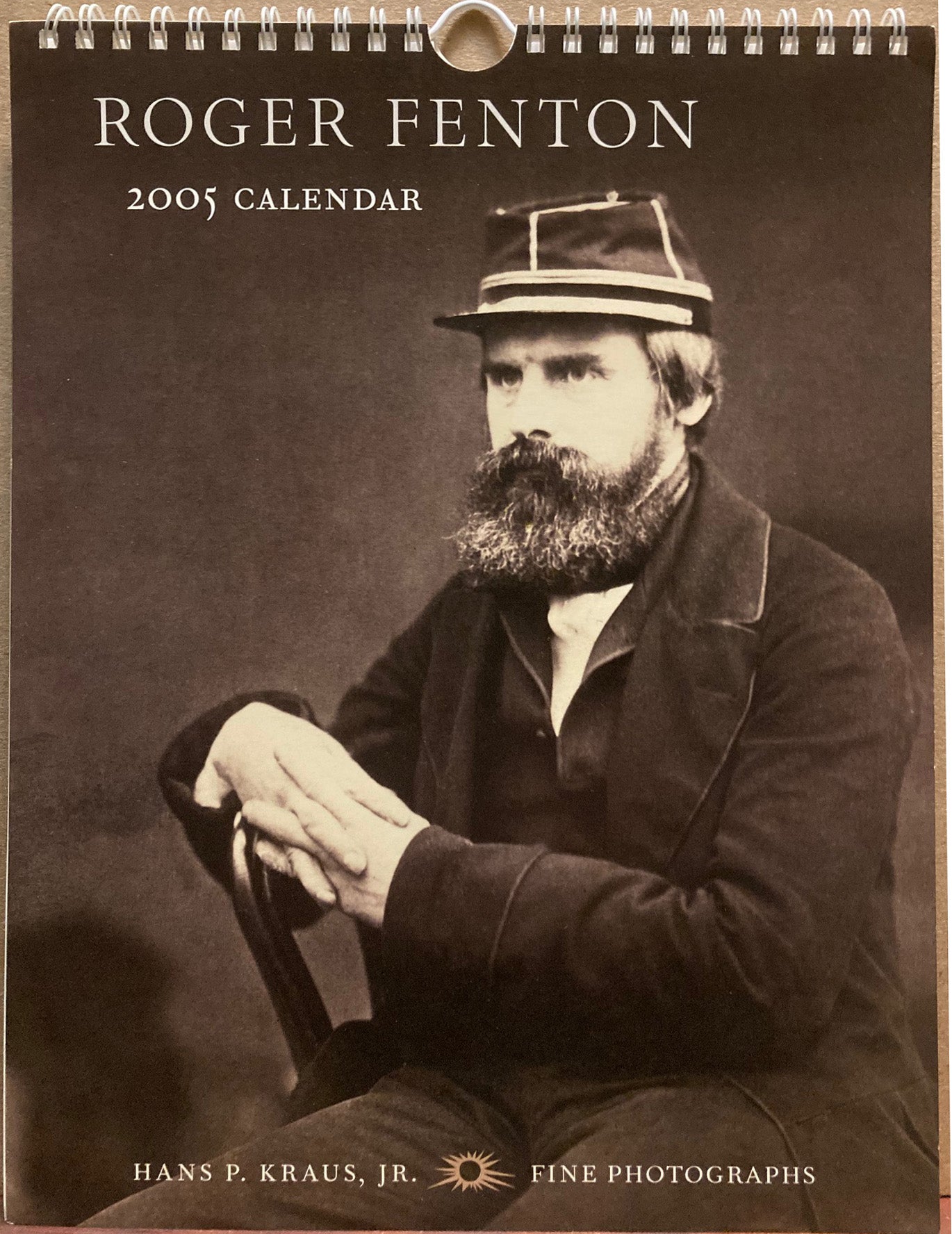 Hans P. Kraus, Jr., 2004. [A calendar with 12 finely reproduced photographs by Fenton, 1855-1860, with portrait of Fenton on cover attributed to Dr. Hugh Welch Diamond. The selection of Fentons include images from the Crimean War, still life, a view in Russia, British countryside, portrait of his father John Fenton, et al., drawn from a recently discovered collection descended through the Fenton family.] Spiral bound, designed for wall hanging, but also with boards that enable it to be displayed on a tabletop. Like new.
