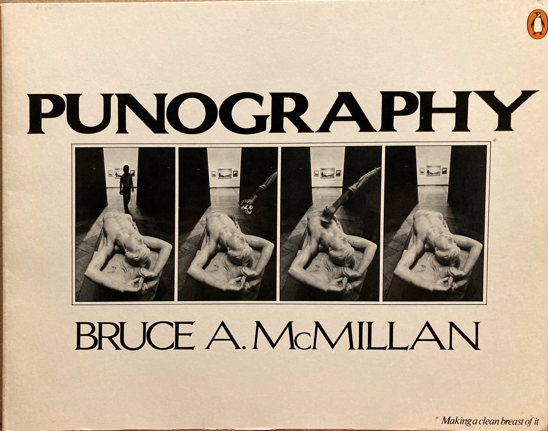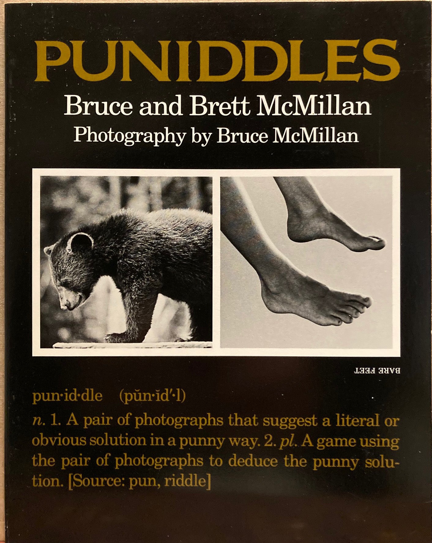 Houghton Mifflin, 1982. A puniddle is "a pair of photographs that suggest a literal or obvious solution in a punny way." Wraps, 30 pages, 2nd printing, like new. SIGNED by McMillan in 1990. Together with a copy of Punography by Bruce A. McMillan. Penguin, 1978, reprinted 1979. Sequences of three or four photographs that illustrate a pun. Wraps, near fine. Both books for one price.