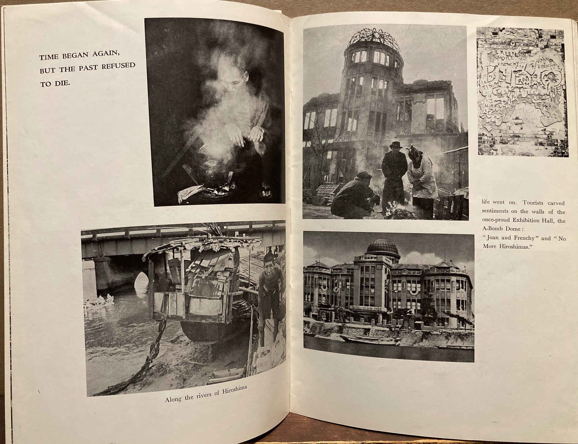 Bijutsu Shuppan Sha, 1964. Includes statements by mayors of Hiroshima and Nagasaki. Plea for world peace and ban on nuclear weapons. Profusely illlustrated with black-and-white photographs by Ken Domon; Kikujiro Fukushima; Shomei Tomatsu; et al. Wraps, unpaginated, good with edge tears last two pages.