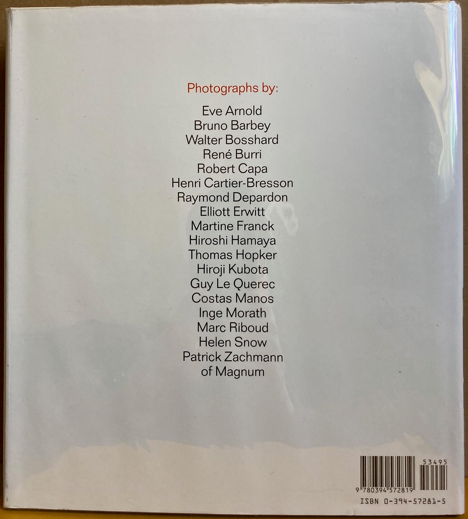 Pantheon, 1888. First U.S. edition, fine hardcover with fine protected dust jacket. Copyrighted by Thames & Hudson, London. Introduction by Jonathan D. Spence. 200 pages with black and white documentary photographs from the Magnum archives by notable photographers: Eve Arnold, Rene Burri, Robert Capa, Henri Cartier-Bresson, Elliott Erwitt, Inge Morath, Marc Riboud, Bruno Barbey, Walter Bosshard, Raymond Depardon, Martine Franck, Hiroshi Hamaya, Thomas Hopker, Hiroji Kubota, Guy Le Quebec, Costas Manos, Helen Snow, and Patrick Zachmann. Chapters: Timeless China; Tides of War; Under Mao; and Towards the Twenty-first Century. Includes chronology and index by photographer.