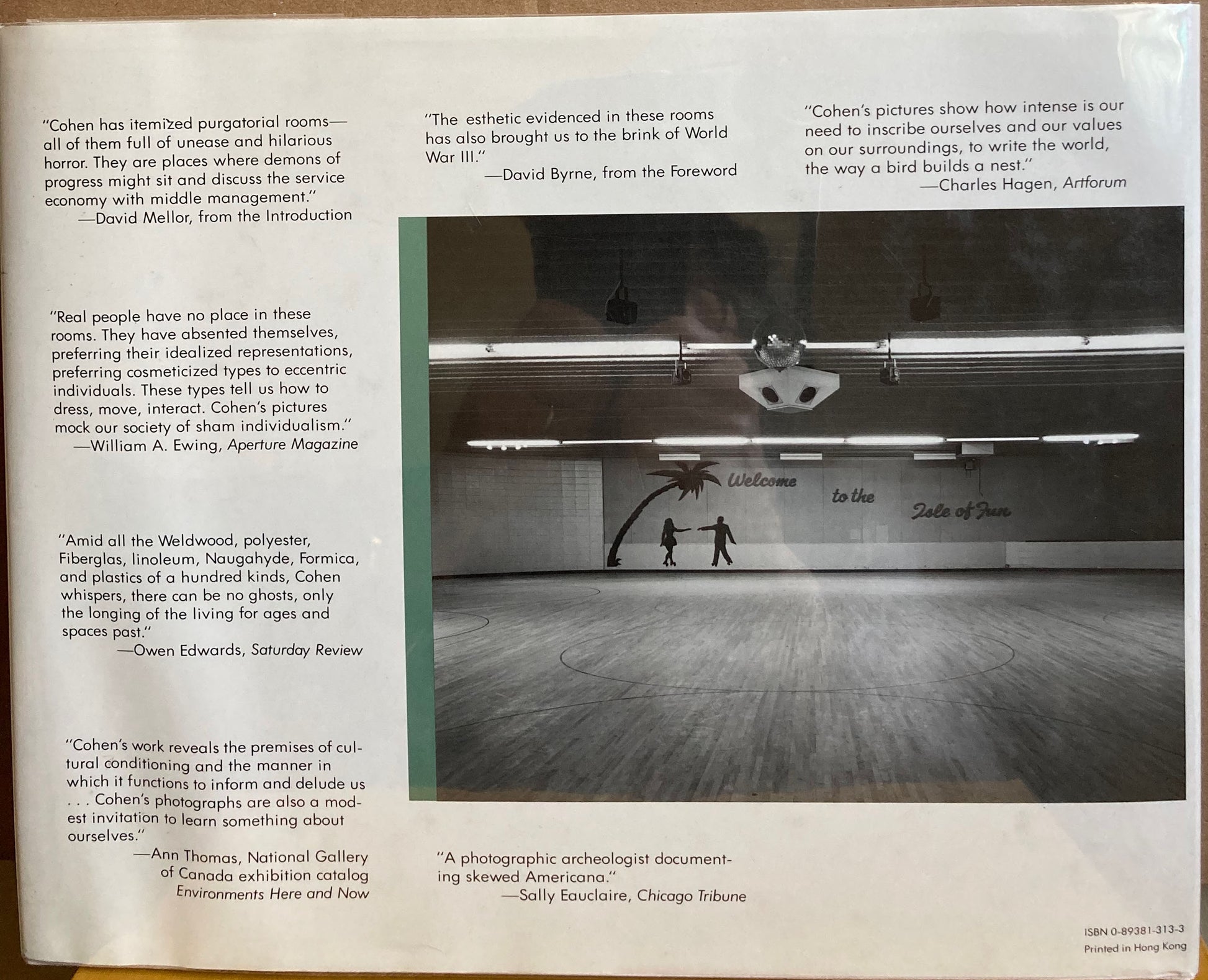 Aperture, 1987. Hardcover with protected dust jacket, both in excellent condition. 112 often humorous black-and-white photographs of interiors by Cohen. Edited and designed by William A. Ewing. Texts by David Byrne and David Mellor. From the dust jacket rear inner panel: "Lynne Cohen is an independent photographer whose uncompromising vision is rapidly gaining her an appreciative following. Born in Wisconsin, she studied painting and sculpture before turning to photography, a medium more responsive to her needs."