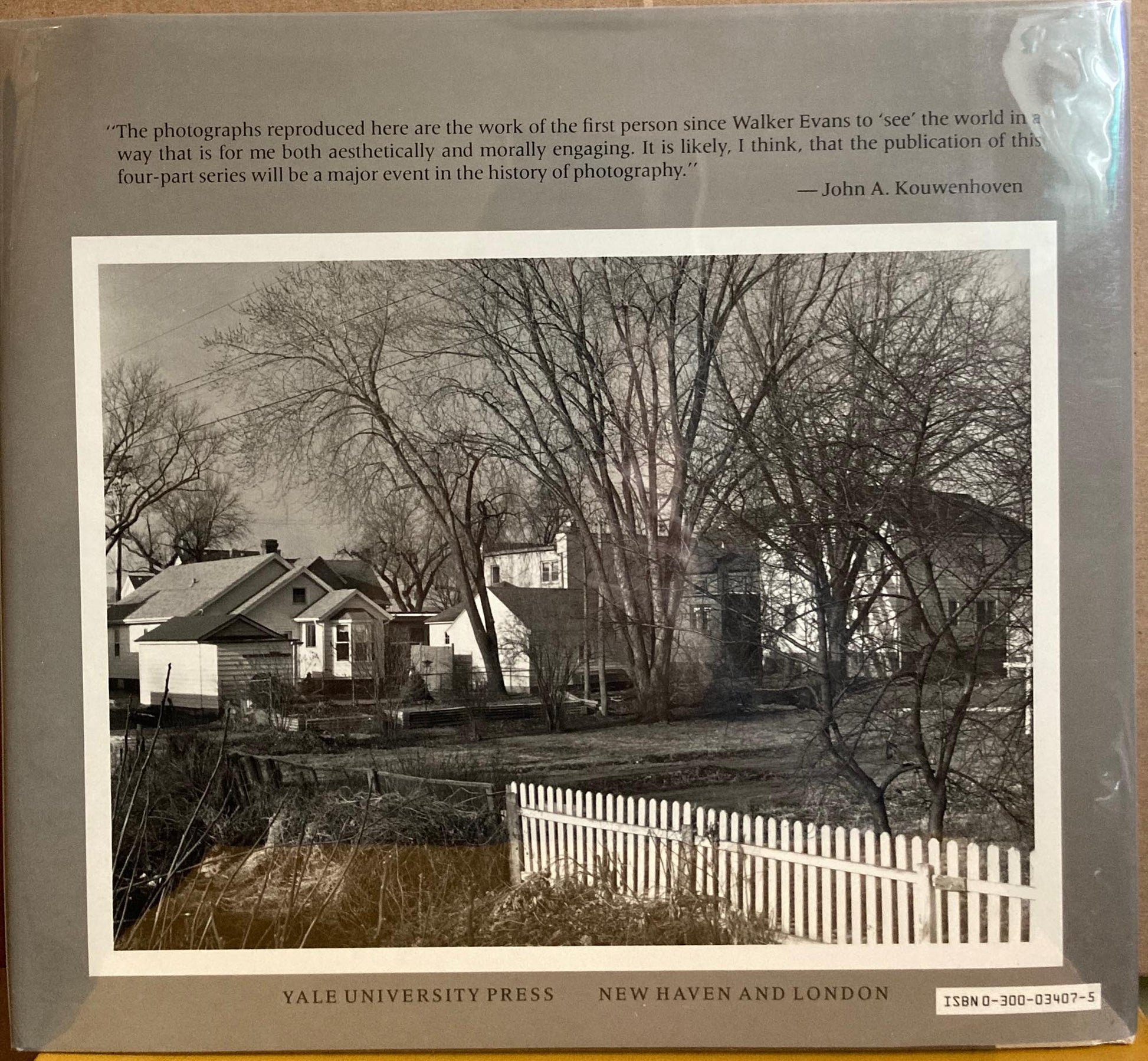 Yale University Press, 1985. First edition, first printing. Hardcover, fine with fine protected dust jacket. 125 pages. 75 black and white full page photographs of residential housing taken in Wildwood, Long Beach Island, Avalon, Clifton, Barnegat Light, Mantoloking, Monmouth Beach, Bay Head, Normandy Beach, and Montclair, all in New Jersey; Madison, Wisconsin; Arlington, Virginia; Del Mar, California; Skowhegan, Maine; Black Point, Connecticut; Luna Pier, Michigan; Albuquerque, New Mexico; Lubbock and Austin, both in Texas; Winesburg, Ohio; Woods Hole, Massachusetts; and Oneonta, New York. Gregory Conniff is a renowned American photographer, known for his striking work in portrait and fine art photography. With a keen eye for detail and a deep understanding of light, Conniff’s style often blends elements of realism with subtle artistic flair, capturing the essence of his subjects with depth and emotion. His work spans various genres, including landscape, architectural, and editorial photography. Conniff’s photography has been featured in numerous exhibitions and publications, earning him recognition in the photography community for his ability to merge technical skill with creative expression. His work is in many prestigious collections, including the Museum of Fine Arts in Boston and the Museum of Modern Art in New York.