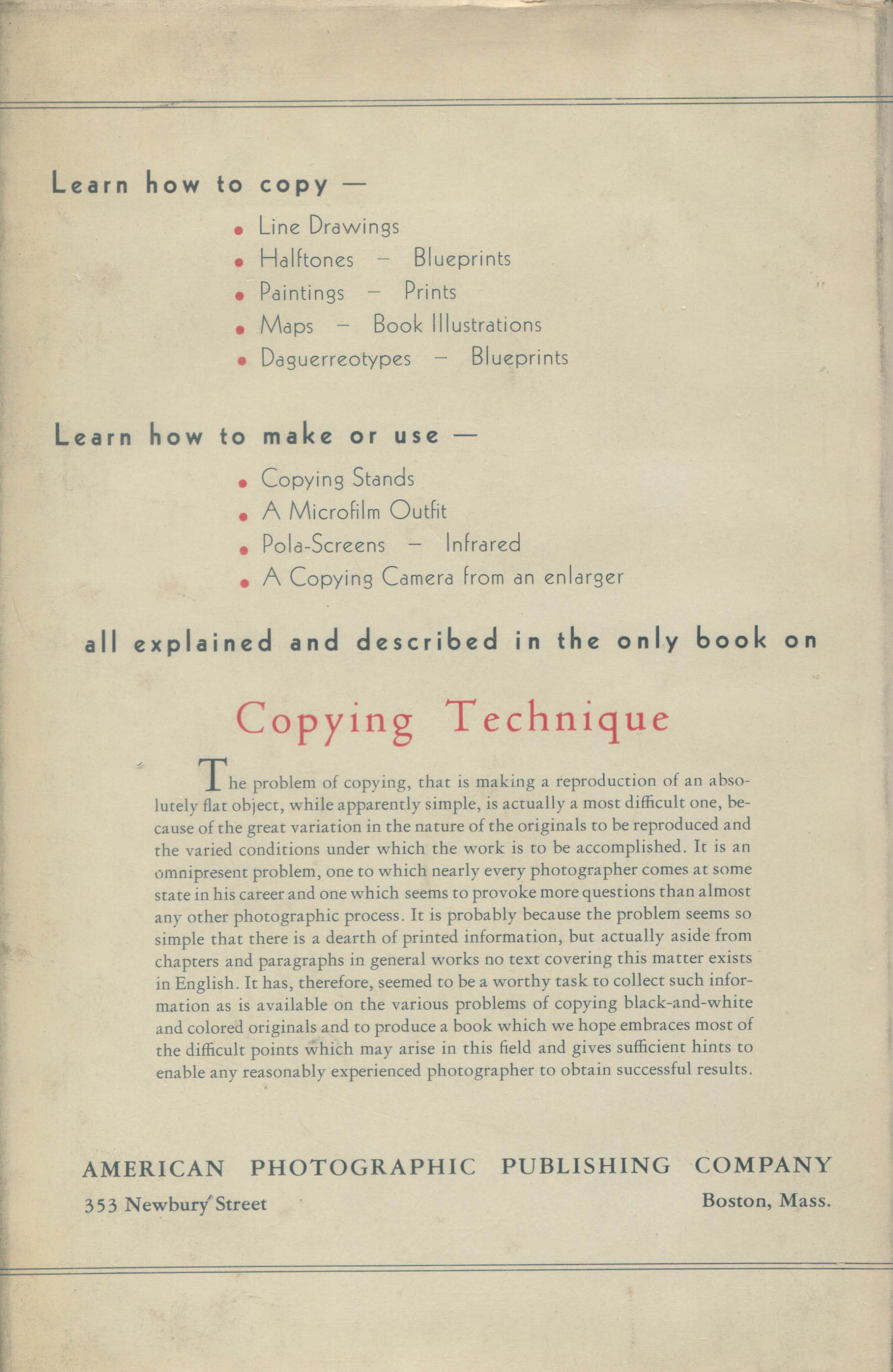 Copying Technique, compiled by Frank R. Fraprie and Robert H. Morris.