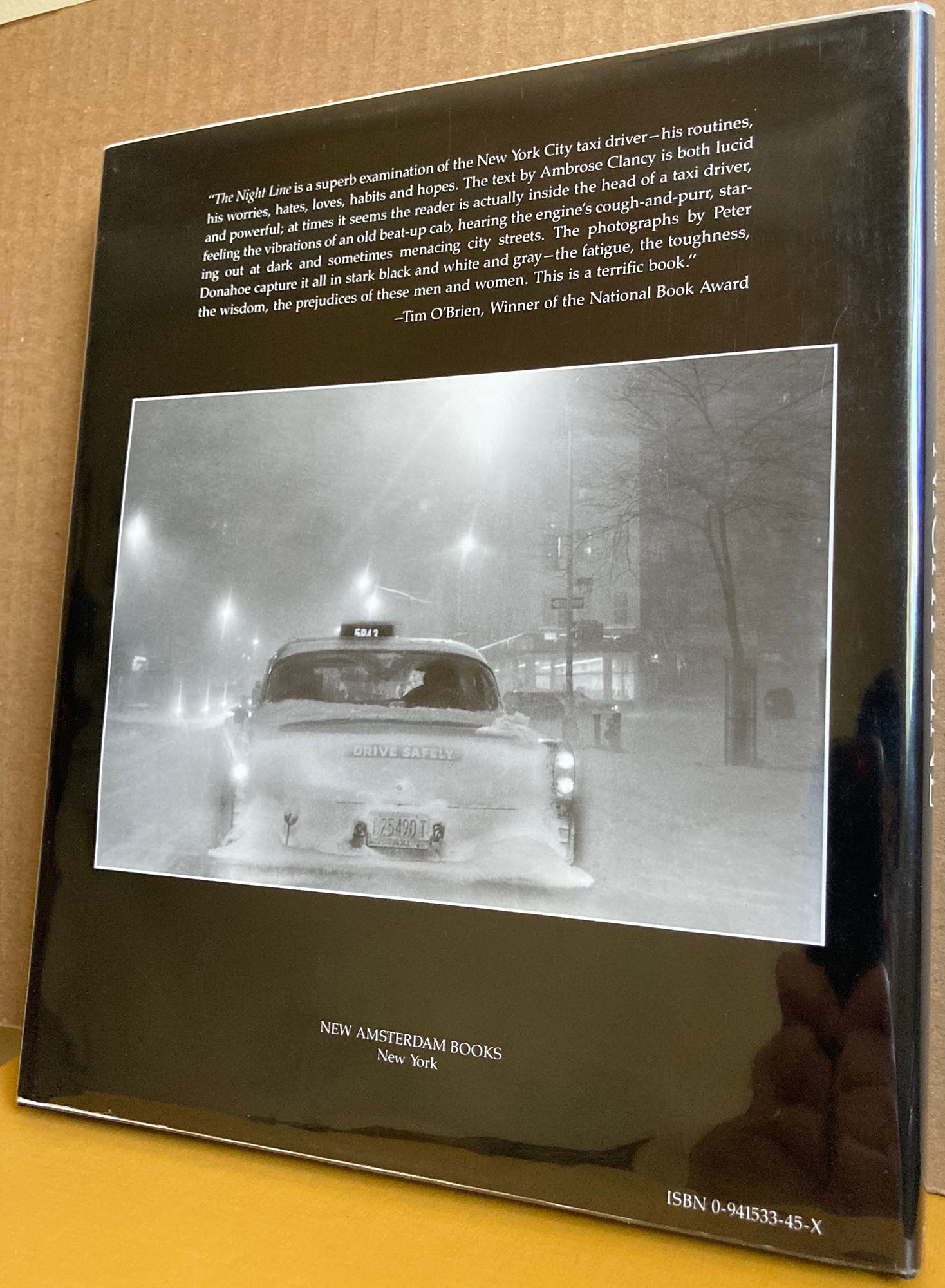 Photographs by Peter M. Donahue. New Amsterdam Books, 1990. Hardcover with protected dust jacket. One small ding on front of protected dust jacket near spine, otherwise fine/fine. Story of one night's work. Both author and photographer were professional cab drivers. Photos were exhibited at the City Museum of New York. 127 pages.