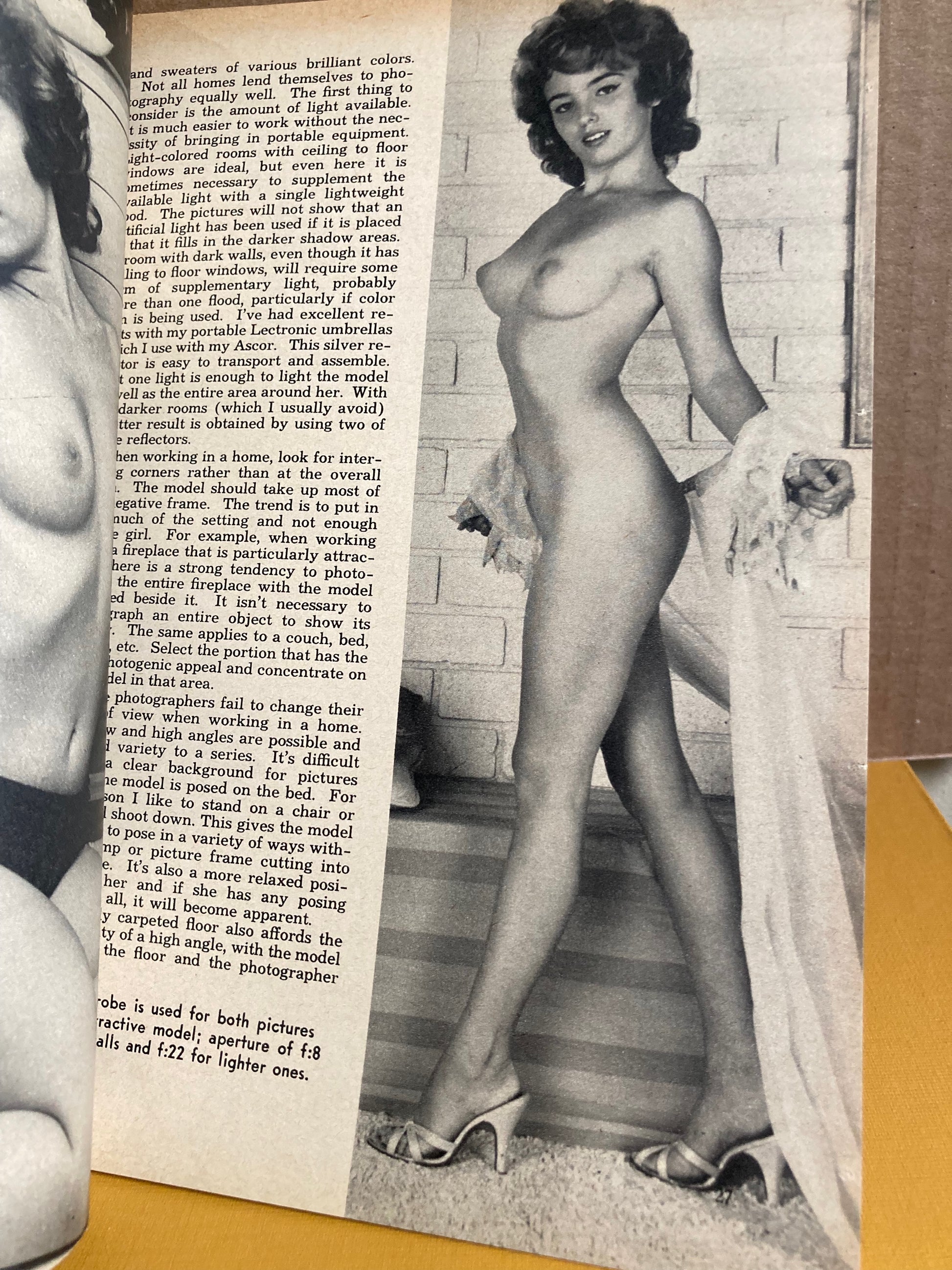 Edited by Adolphe Barreaux. Whitehouse Publications,1962. Wraps, good with crease at corner of cover and browning at page edges. 112 pages. Profusely illustrated with photographs of young beautiful women models in an astonishing variety of poses, both indoors and outdoors, most of them nude or in two-piece bathing suits. Peter Gowland was one of the best known cheesecake photographers for calendars, pinups, Hollywood starlet promotional photos, glamor, and related work. In this book, he explains his techniques in working with exceptionally endowed models in both artificial and natural light. Includes some photos of Gowland with camera and model.
