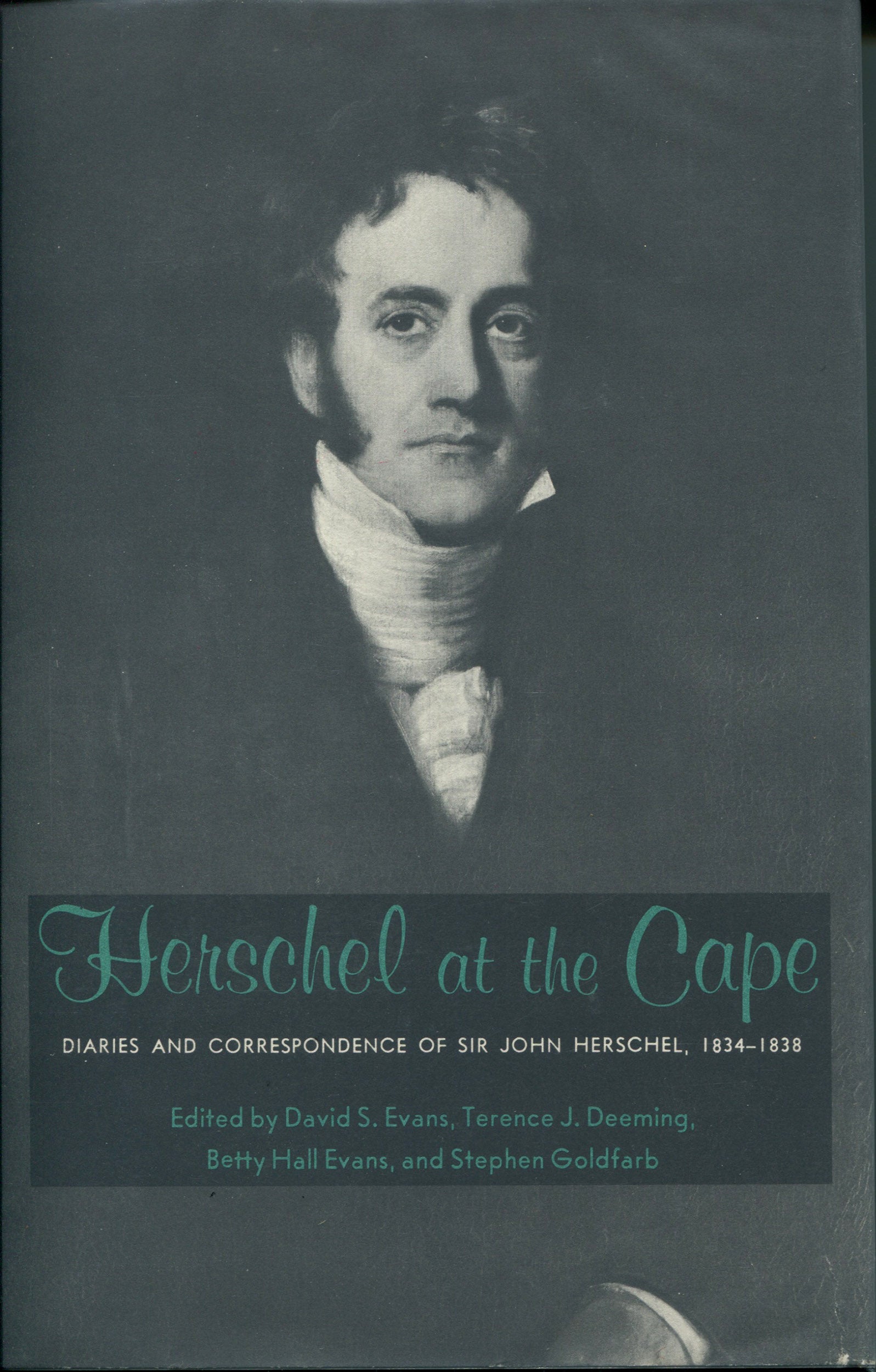 Edited by David S. Evans, Terence J. Deeming, Betty Hall Evans, and Stephen Goldfarb. University of Texas Press, 1969. Hardcover, fine with near fine protected price-clipped dust jacket. 398 pages. Two maps, twenty plates, one frontispiece and thirteen figures. Illustrations include camera lucida sketches by Herschel. Covers period 1834–1838, just before Herschel returned to England from South Africa, where he was involved in astronomy. After his return, he became involved in the early development of photography, along with William Henry Fox Talbot, whom Herschel mentions once in this diary. Among other contributions to photography, Herschel suggested the use of sodium thiosulfate as fixer, invented the cyanotype, and suggested the use of the hunting term snapshot to describe stop action photography.
