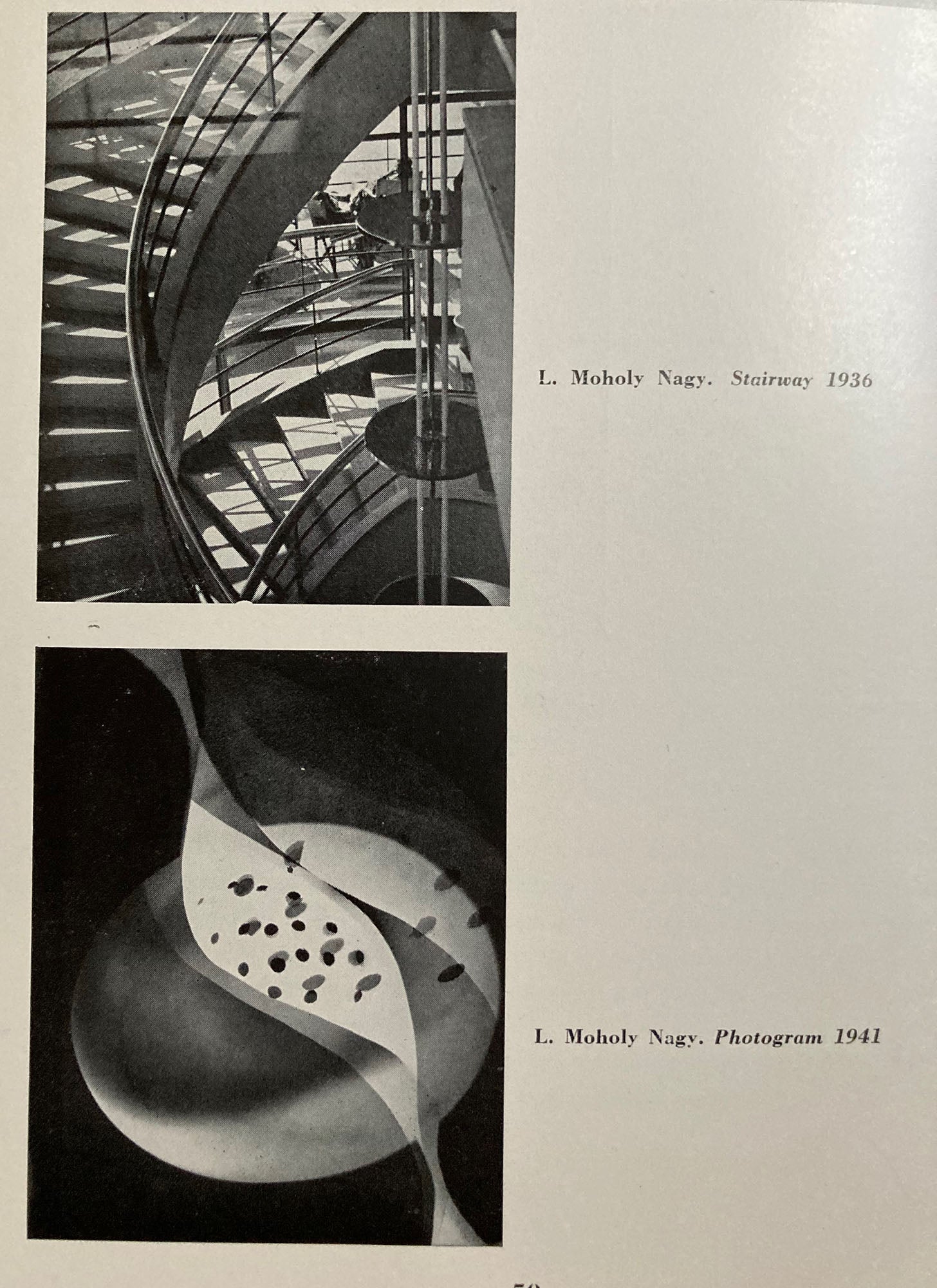 Paul Theobald, 1944, 1947. Hardcover in cloth, near very good with wear at spine tips, 4th printing; one inner pane of dust jacket laid in; bookplate, name of previous owner (Ethel S. Fletcher) written on front flyleaf. Includes numerous reproductions of artwork in a variety of media, including photography and painting by Pablo Picasso, Moholy-Nagy, Nathan Lerner, Berenice Abbott, Harold E. Edgerton, Frank Levstik, Kasimir Malevich, Vladislav Sutnar, Man Ray, Fernand Lever, Alexander Rodchenko, Juan Gris, Gyorgy Kepes, et al. Includes photograms. A widely distributed and reprinted book although fourth printings are increasingly uncommon.