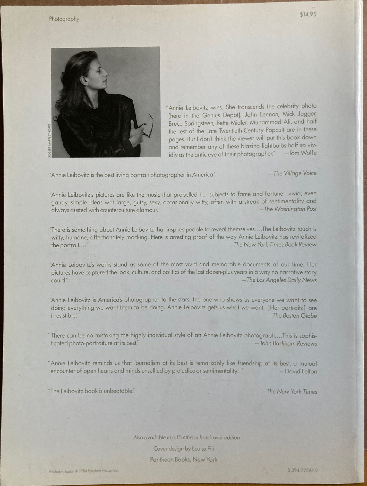 Pantheon/Rolling Stone, 1983. Introduction by Tom Wolfe. Near fine in stiff illustrated wraps with just a trace of shelf wear on covers. No statement of edition, presumed first edition. Includes interview with the photographer and list of subjects at back of book. Photographs of celebrities, mostly movie stars and rock and roll musicians of renown, one to a page. These more than 50 portraits are noted for the unusual poses; indeed, some were considering shocking when they first appeared in Rolling Stone and other publications. Others were not previously published. Subjects include Meryl Streep, Rickie Lee Jones, Linda Ronstadt, Christo, Norman Mailer, The Rolling Stones, The Who, Bruce Springsteen, Patti Smith, Muhammad Ali, The Blues Brothers, Lauren Hutton, Steve Martin, Peter Tosh, Fleetwood Mac, Blondie, Sylvester Stallone, Clint Eastwood, James Taylor, Carly Simon, Elvis Costello, Tammy Grimes, Amanda Plummer, Sissy Spacek, Matt Dillon, Robert Redford, Muriel Hemingway, Pat Benatar, Woody Allen, John Travolta, Calvin Klein, Dolly Parton, Paloma Picasso, Bob Dylan, Johnny Carson, Rodney Dangerfield, Jerry Lewis, William Hurt, Bette Midler, John Lennon and Yoko Ono, et al.