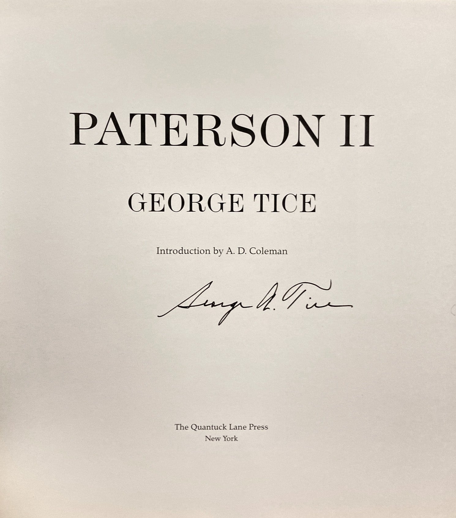 Introduction by A.D. Coleman. Quantuck Lane Press, 2006. 1st printing, fine with near fine protected dust jacket that has a few small indentations. Unused book. Photographs of Paterson, New Jersey, issued 35 years after Tice's Paterson. Finely printed in Belgium in 600-line screen quadtone. SIGNED.