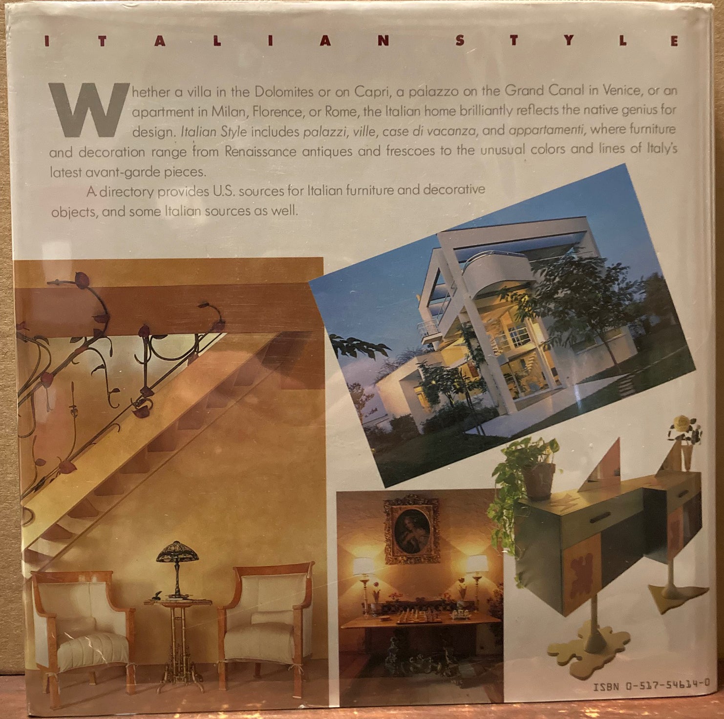 Clarkson N. Potter, 1985. Like new, hardcover with protected dust jacket. 300 pages. Profusely illustrated in color photographs of different types of residential housing in Italy, such as villa, farmhouse, apartment, palace, et al., interiors and exteriors, showing wall treatments, furniture, objets d'art, paintings, sculpture, gardens, architecture, and more. Issued at $35.